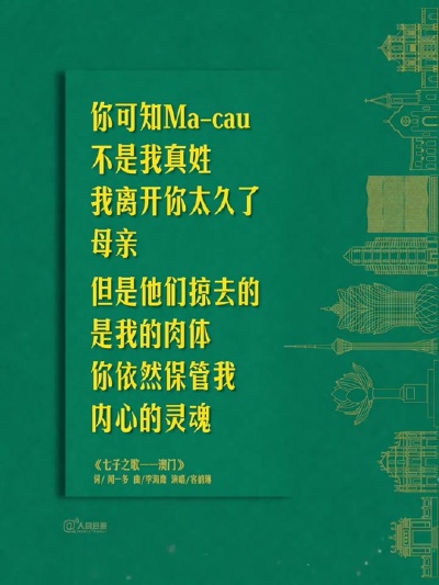 【令典簡(jiǎn)評(píng)】《七子之歌·澳門(mén)》是聞一多于1925年創(chuàng)作的組詩(shī)《七子之歌》中的一首現(xiàn)代詩(shī)。該詩(shī)以擬人化手法,將澳門(mén)比作被奪走的孩子,通過(guò)“你可知‘?huà)尭邸皇俏业恼婷铡薄拔译x開(kāi)你的襁褓太久了”等質(zhì)樸語(yǔ)言,直白而深切地表達(dá)了領(lǐng)土被割讓的屈辱感與對(duì)祖國(guó)統(tǒng)一的強(qiáng)烈渴望。詩(shī)中“擄去的肉體”與“保管靈魂”的對(duì)比,既揭示了殖民統(tǒng)治的殘酷性,也凸顯了民族精神的堅(jiān)韌。全詩(shī)結(jié)構(gòu)勻稱,情感層層遞進(jìn),從個(gè)體命運(yùn)的傾訴延伸至對(duì)民族命運(yùn)的呼喚,展現(xiàn)了知識(shí)分子在民族危難時(shí)刻的憂思與擔(dān)當(dāng)。1998年,此詩(shī)被譜曲為同名歌曲,成為大型電視紀(jì)錄片《澳門(mén)歲月》的改編主題曲,1999年12月20日澳門(mén)回歸,這首歌又成為迎接澳門(mén)回歸的主題曲。