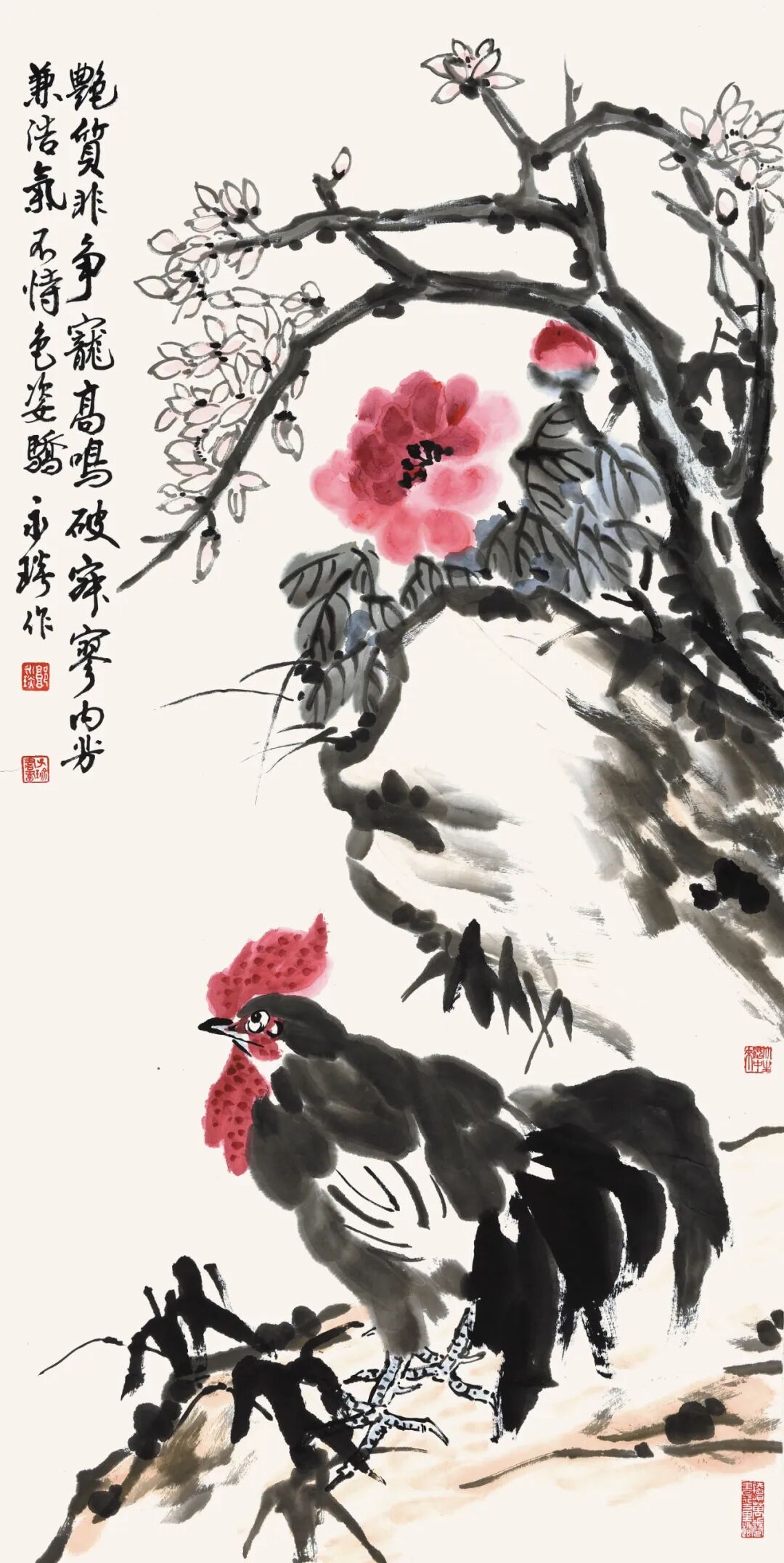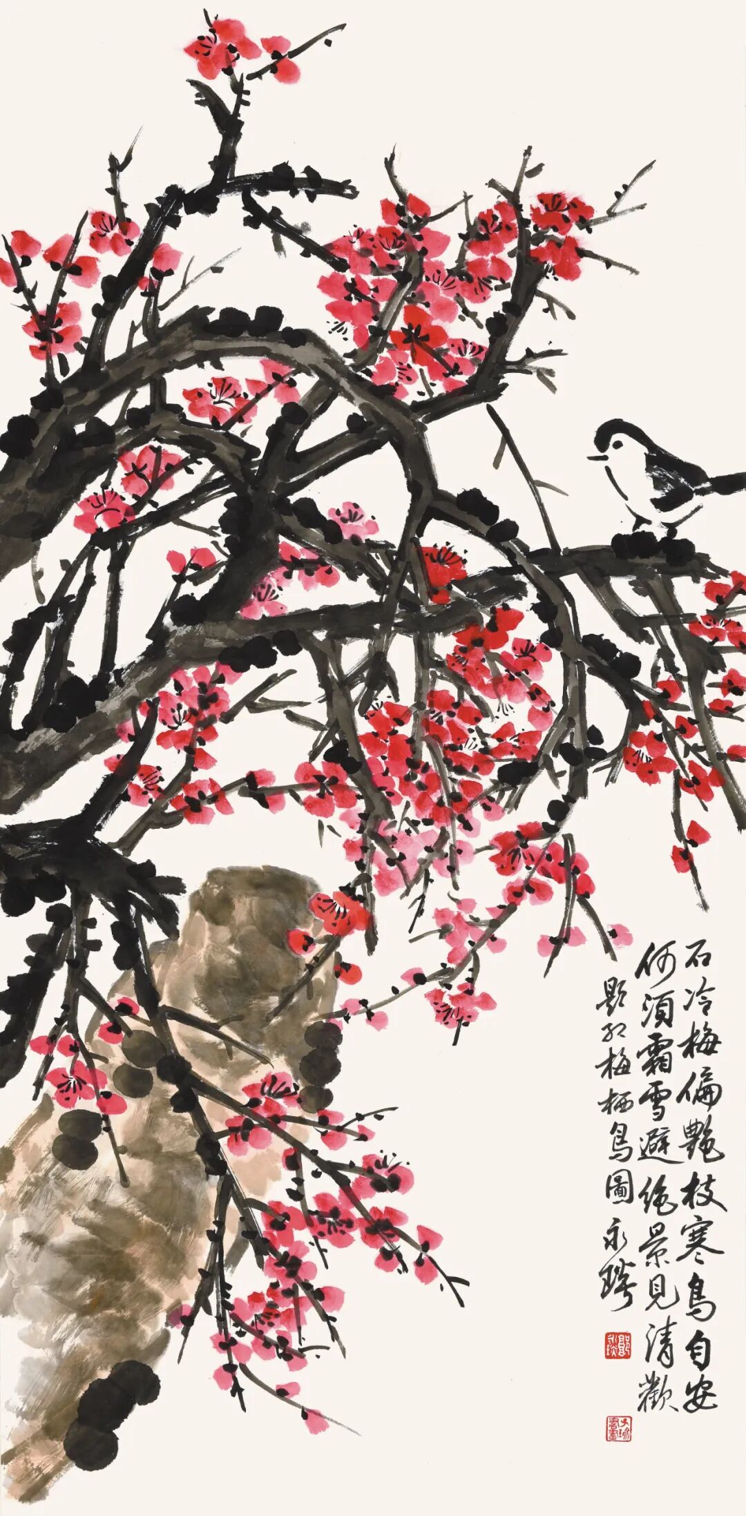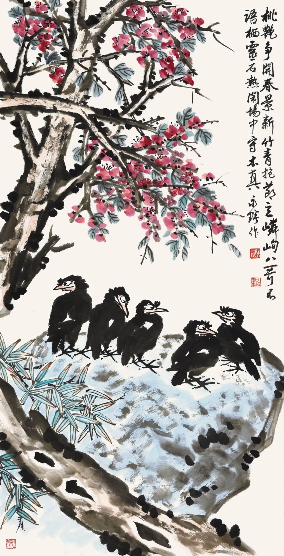 桃艷爭開春景新,竹青抱節立嶙峋。