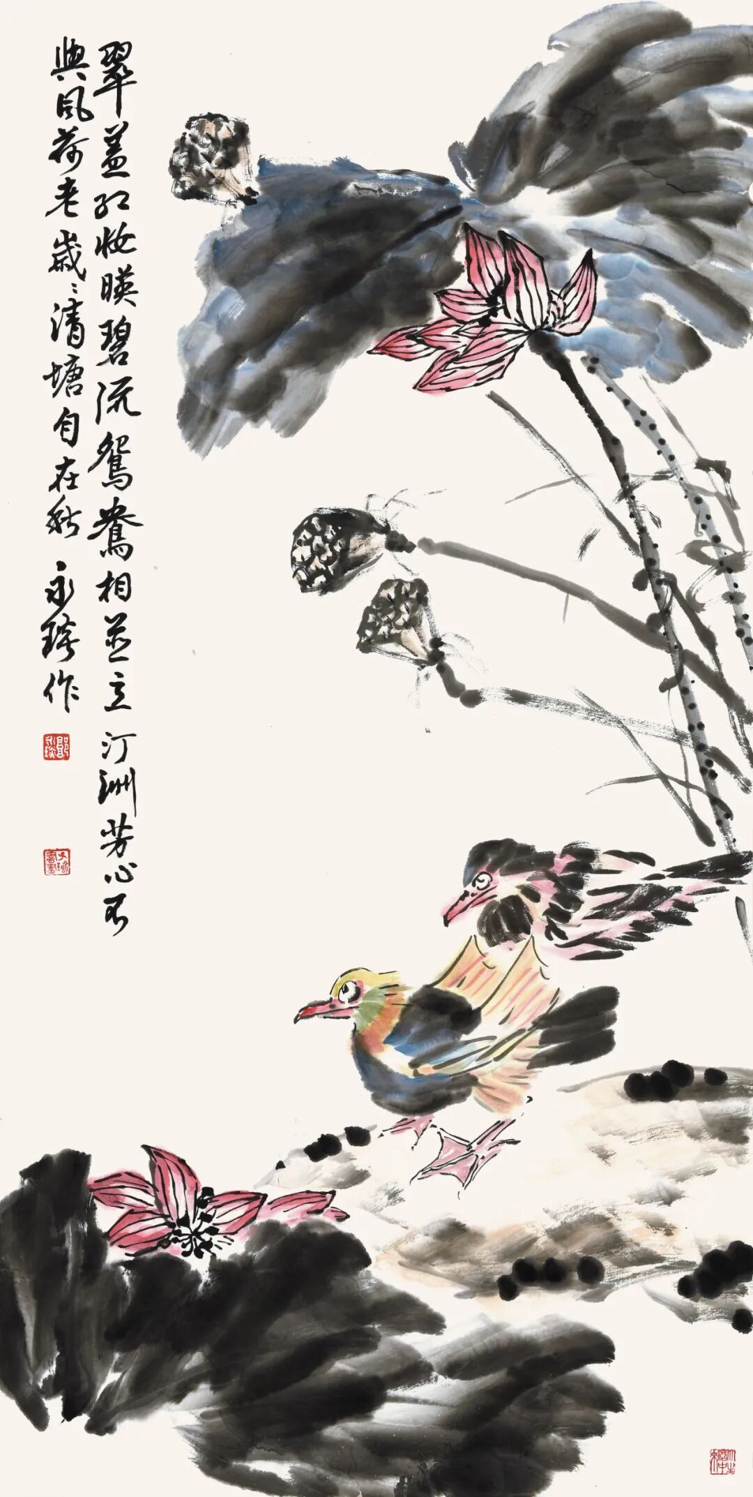 荷塘鴛鴦圖 138cmx68cm 2025年