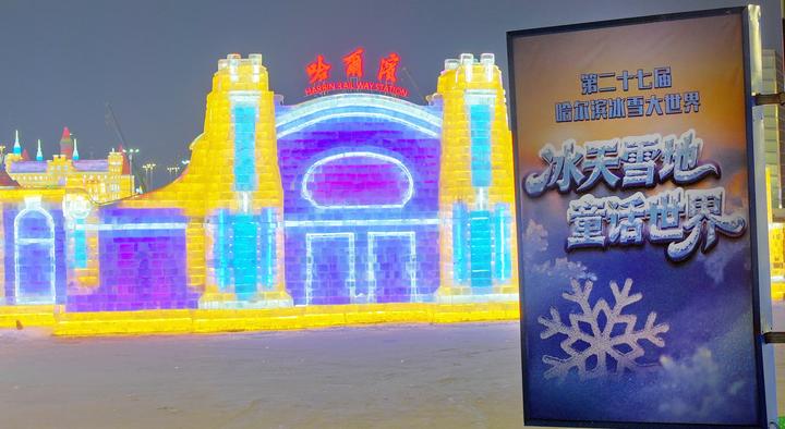 這列火車不僅是哈爾濱鐵路歷史的浪漫致敬,更以奇幻造型成為游客爭相打卡的“冰上網紅”。當LED燈光穿透冰體,整座車站仿佛被施了魔法,在零下20℃的寒風中,為游客鋪就一條通往童話的冰雪之路。
