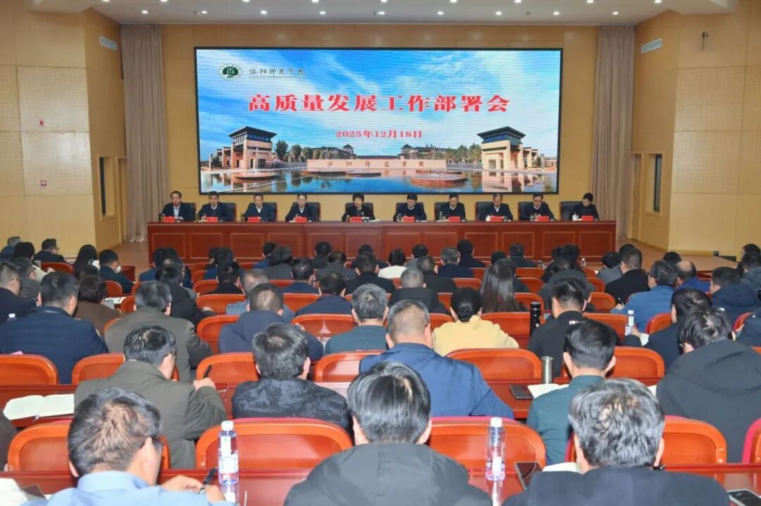 校黨委書記郭改英作題為《錨定目標 勇擔使命 聚力攻堅 奮力開創學校事業高質量發展新局面》的動員講話。她指出,當前和今后一個時期是以中國式現代化全面推進強國建設、民族復興偉業的關鍵時期,對高層次人才和科技創新的需求更加迫切。建設教育強國,龍頭是高等教育,我們要深入貫徹落實《教育強國建設規劃綱要(2024—2035年)》《教育強省建設規劃綱要(2025-2035年)》戰略部署,堅定不移將“更名大學、獲批博士學位授予單位”作為學校“十五五”時期的奮斗目標,作為牽引高質量發展的重要引擎和核心驅動,持續深化內涵建設和特色發展,努力在服務國家戰略和區域發展中彰顯更大擔當作為。