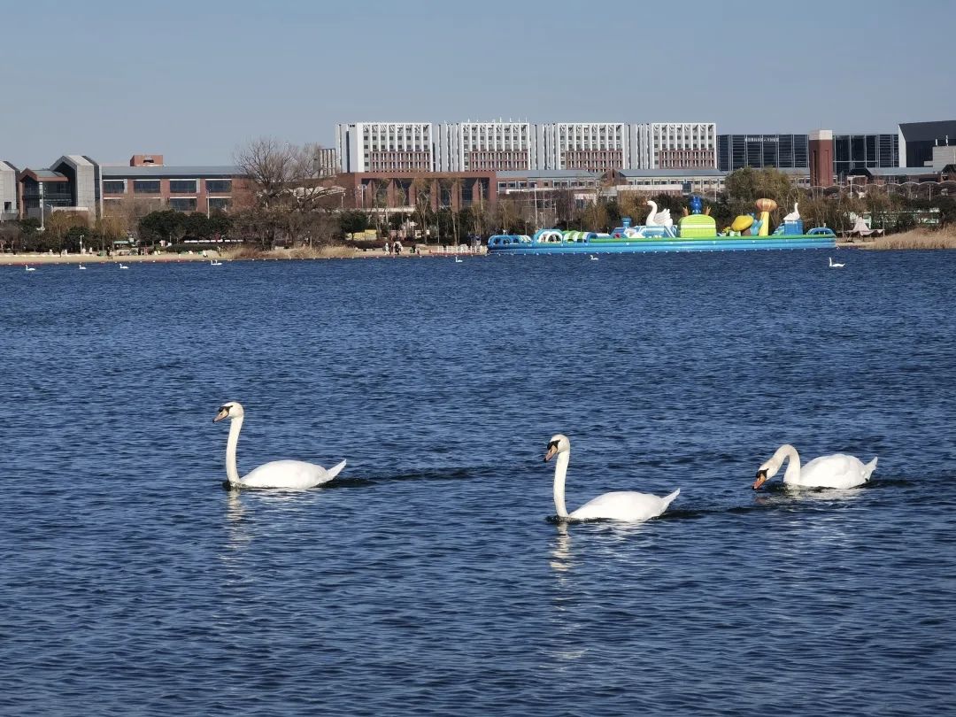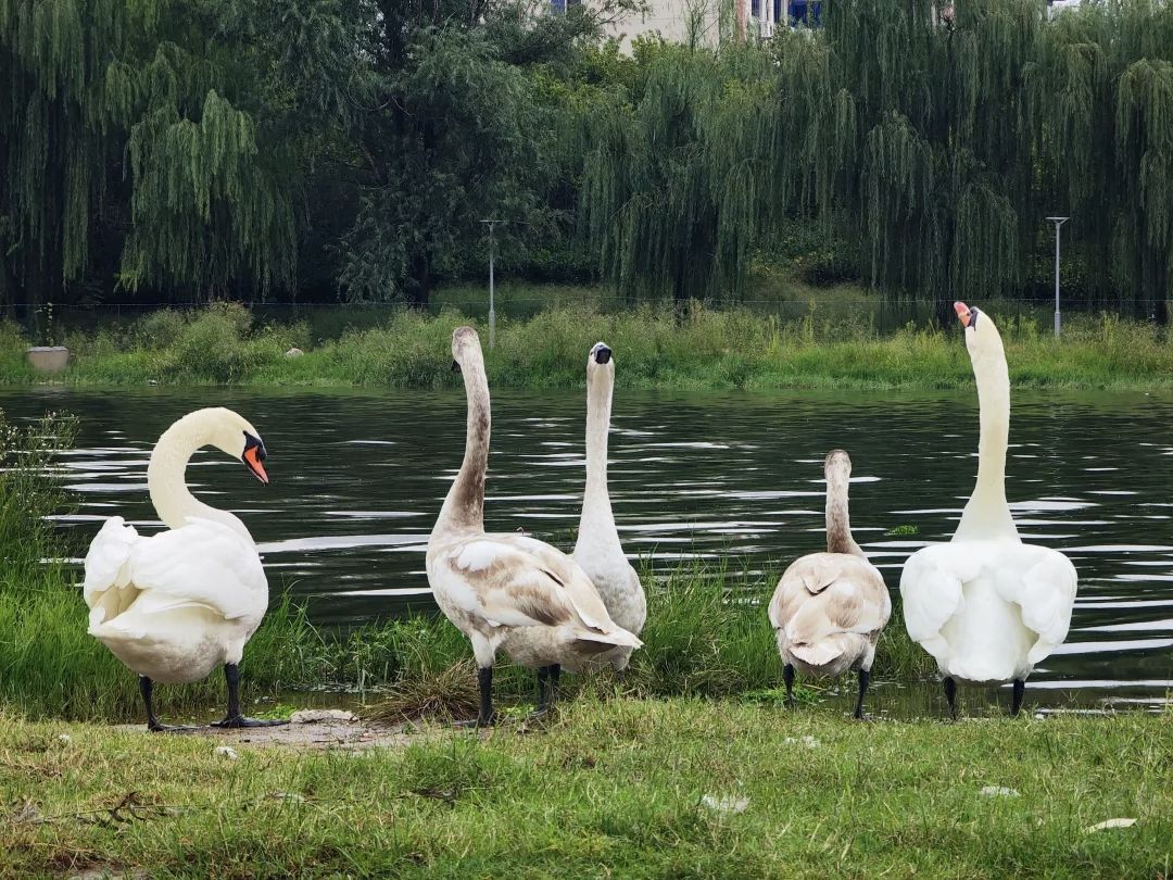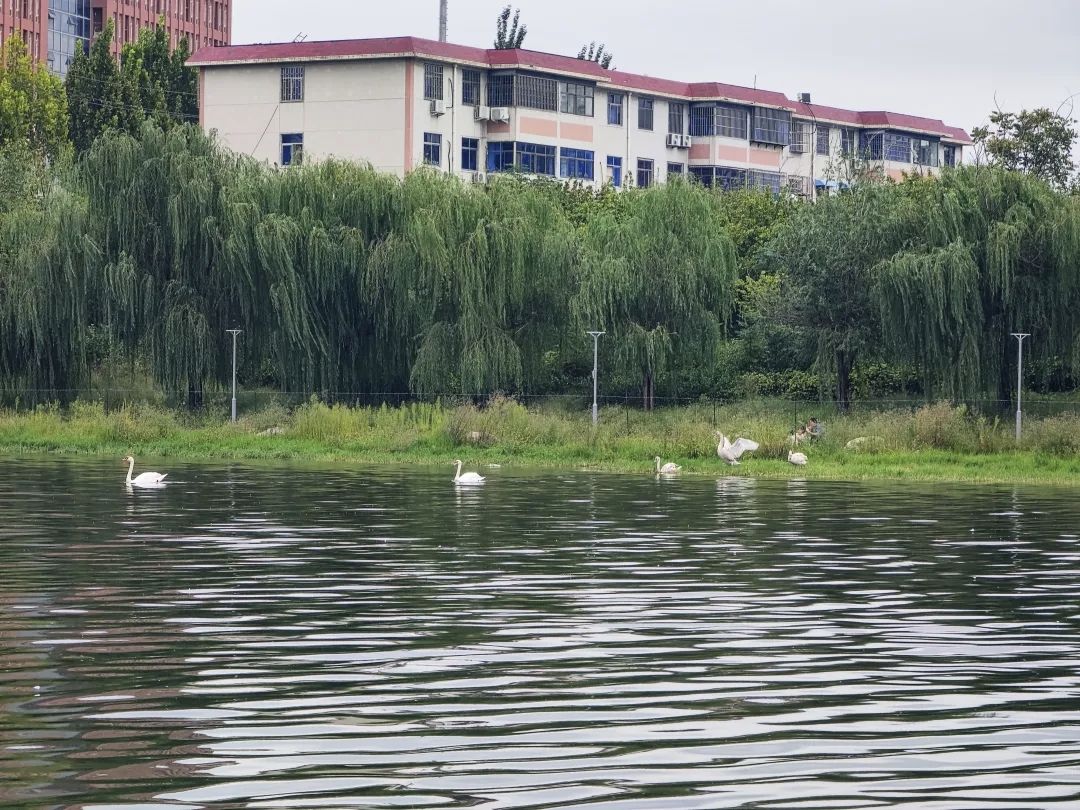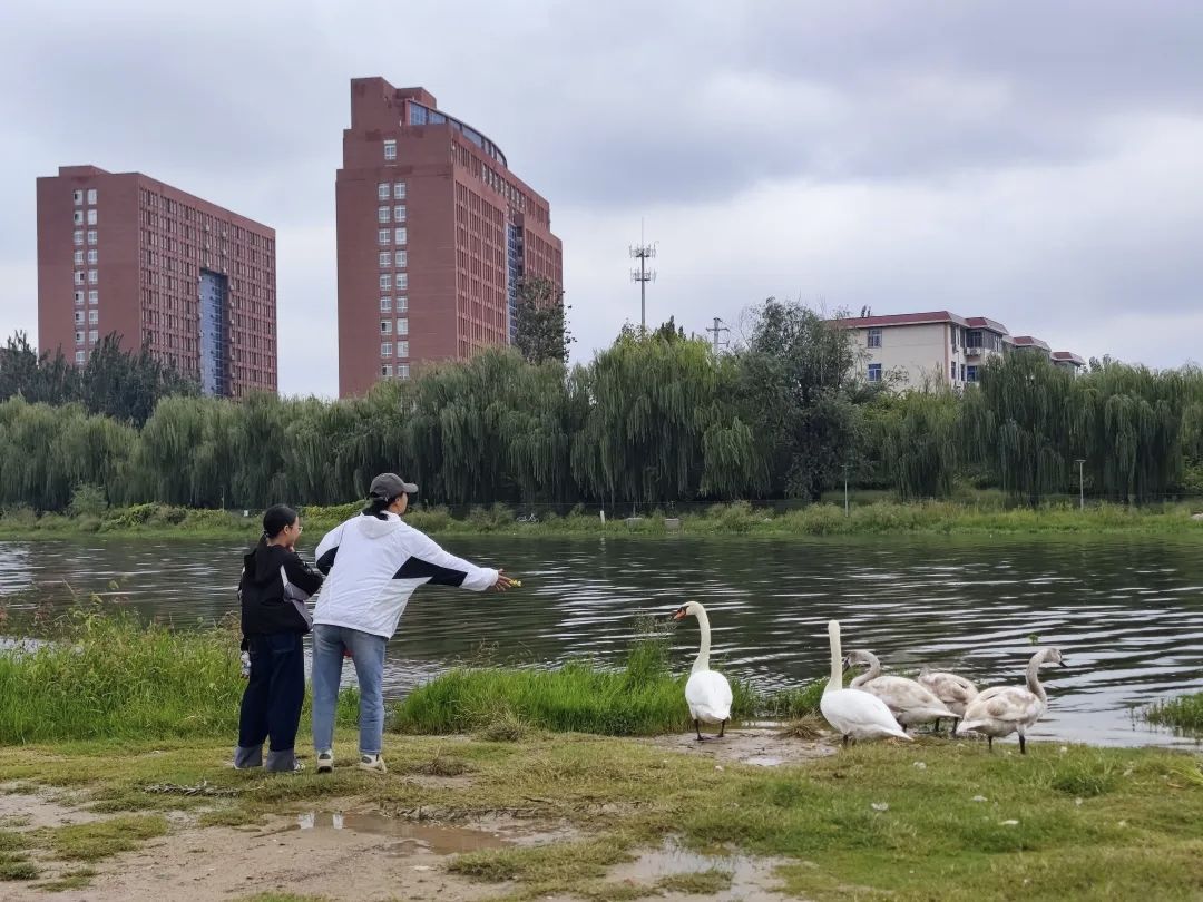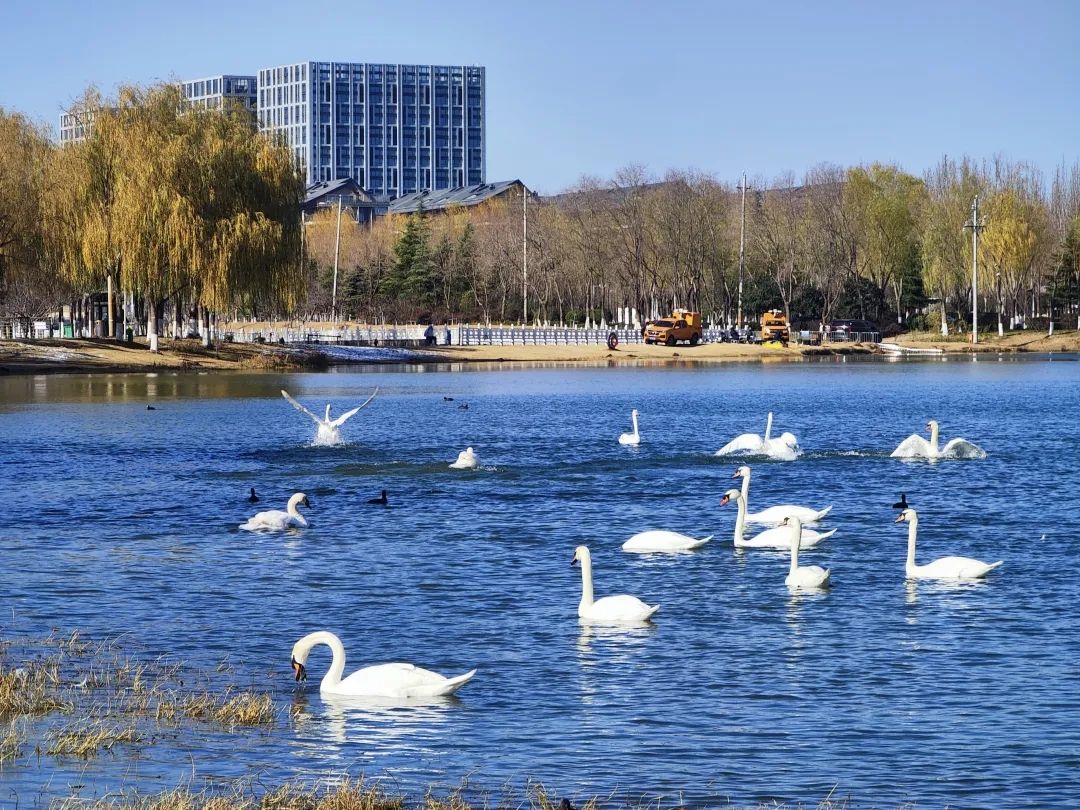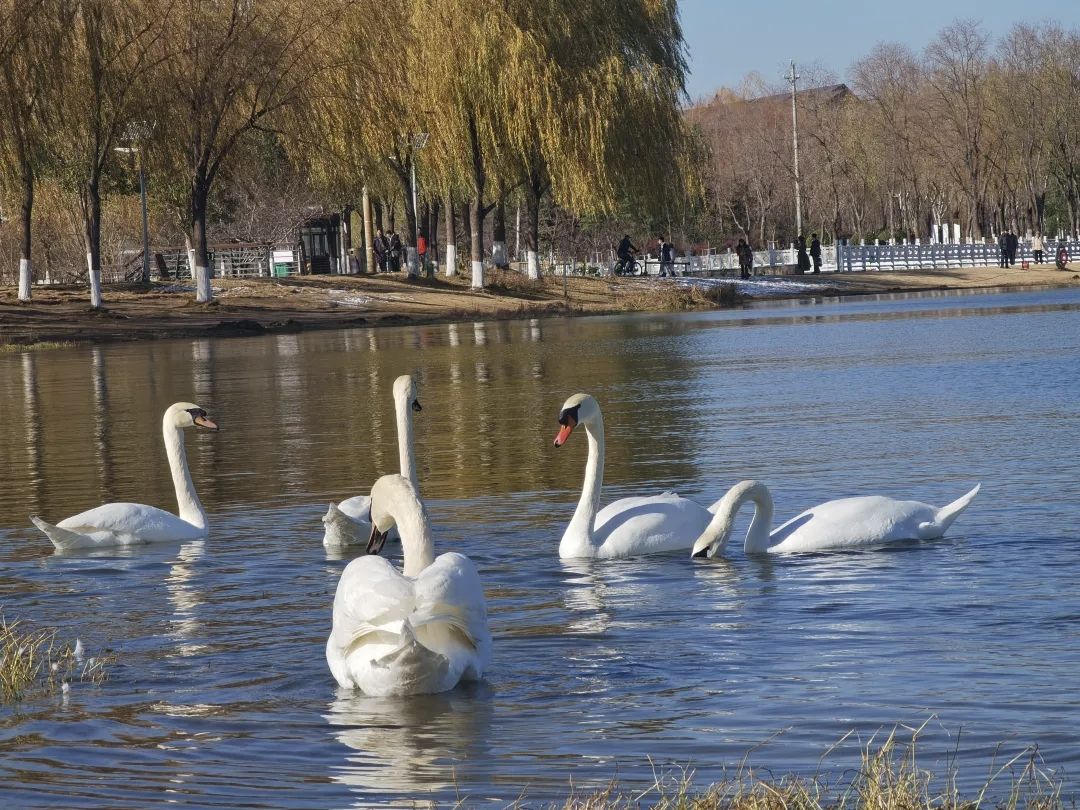 幾年前,幾只遷徙的天鵝在北龍湖落單,在此安家落戶。
