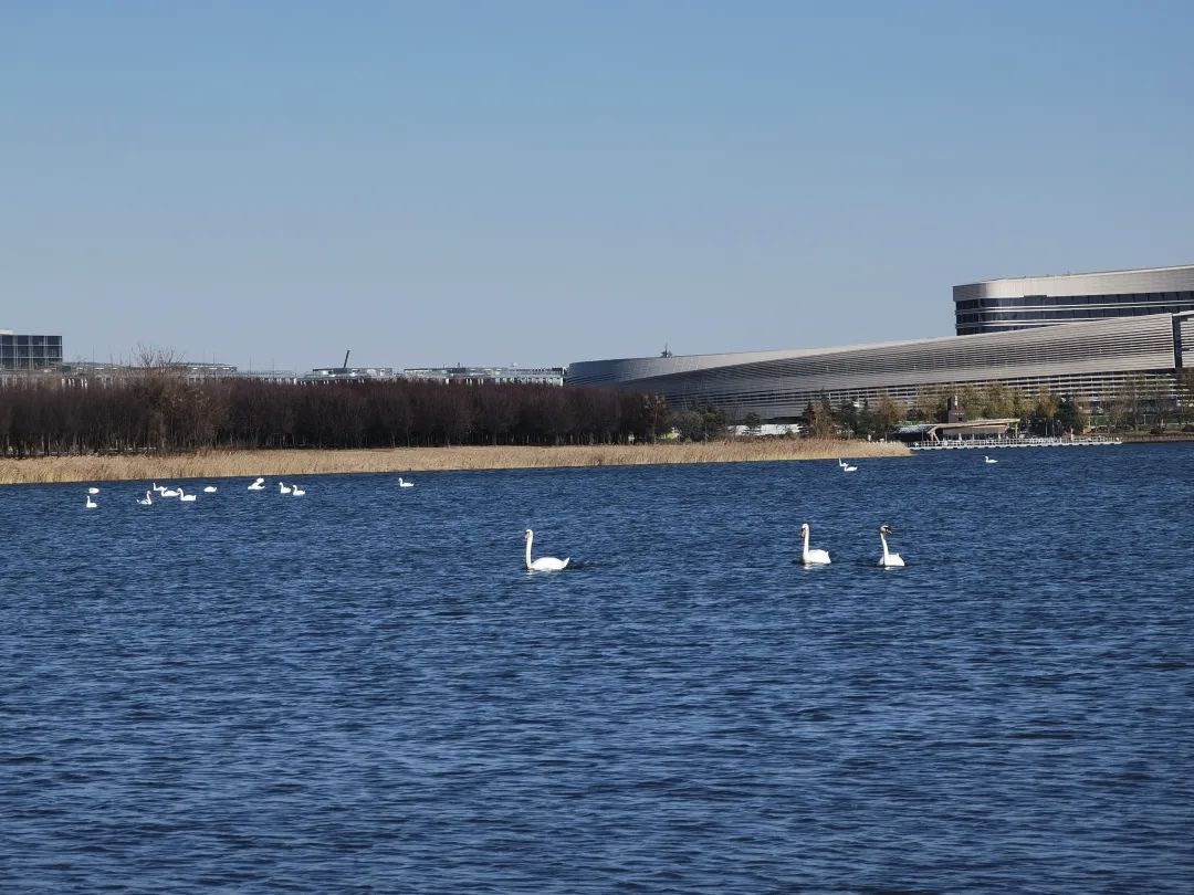 由于受到人們的愛護,這里的天鵝隊伍不斷繁衍壯大,但受水域面積等影響,發展的速度明顯比北龍湖要慢多了。