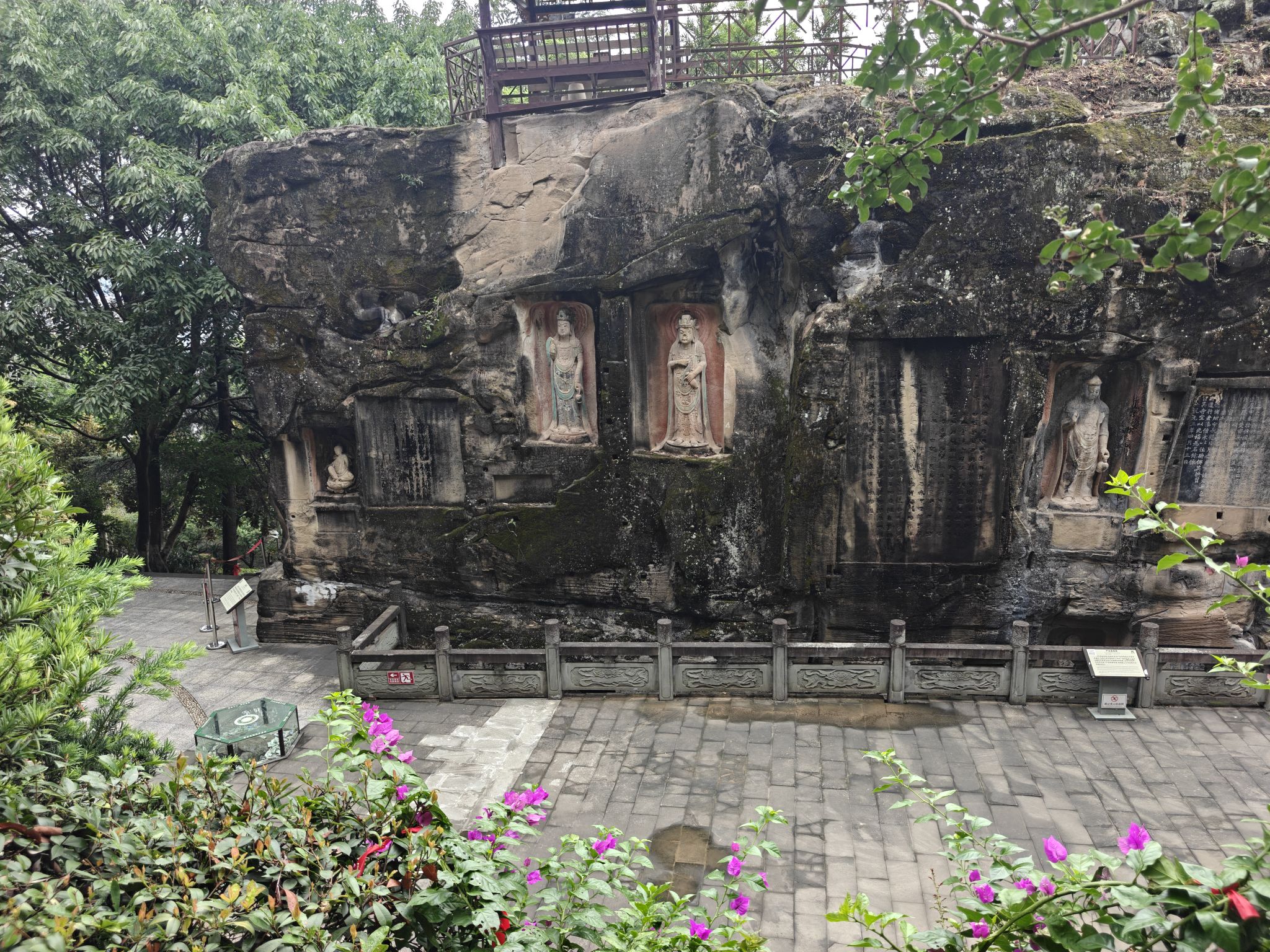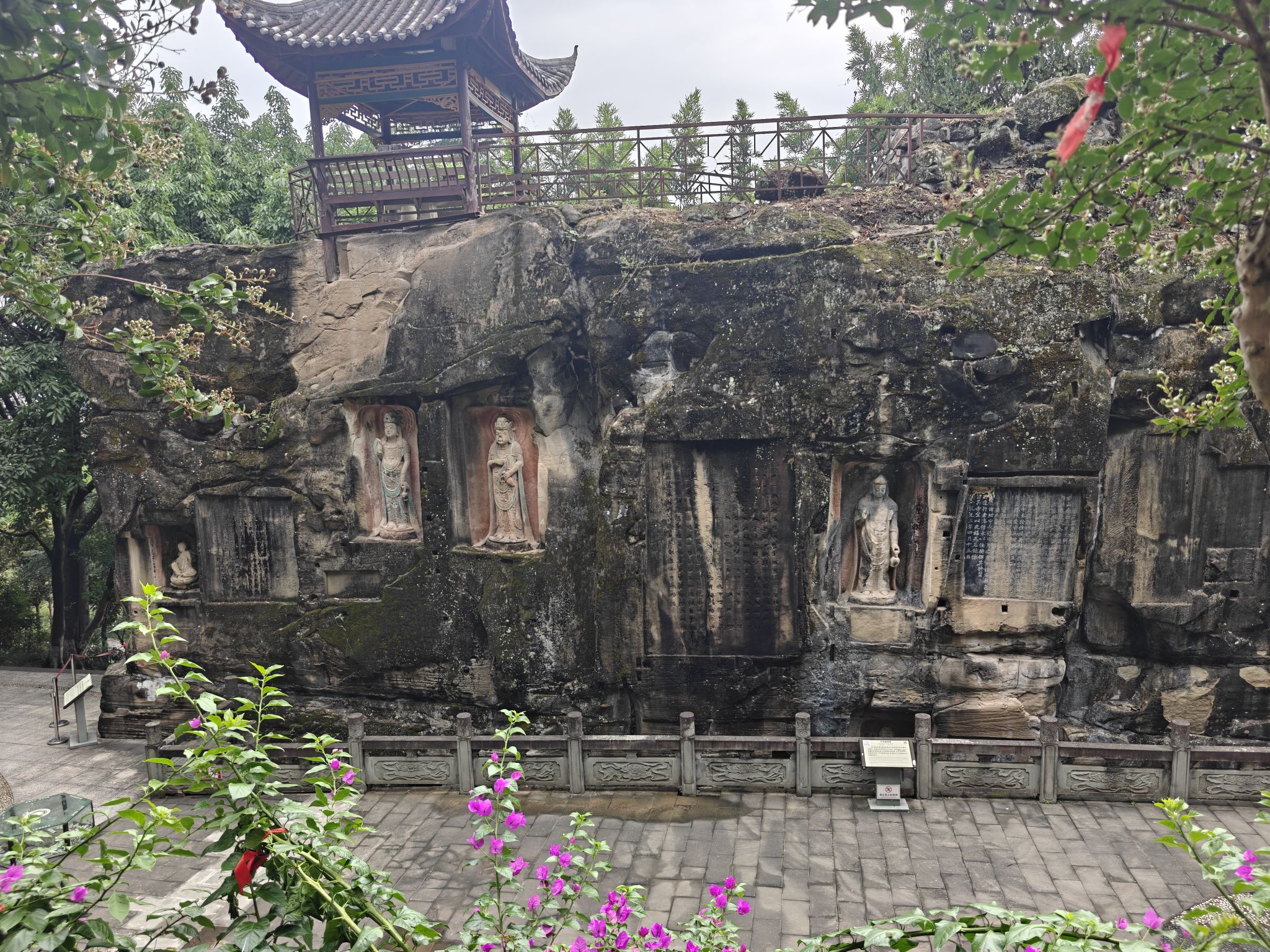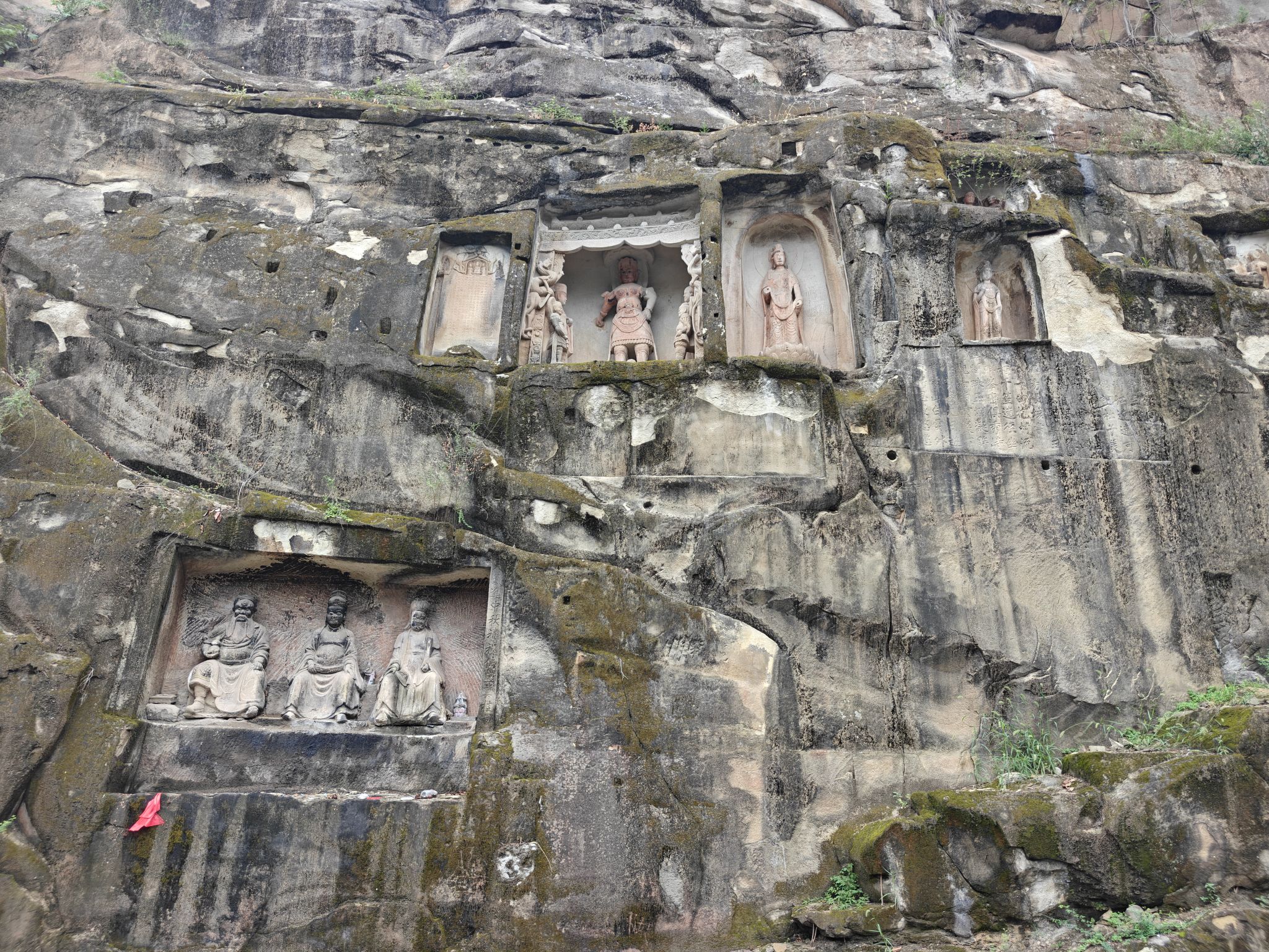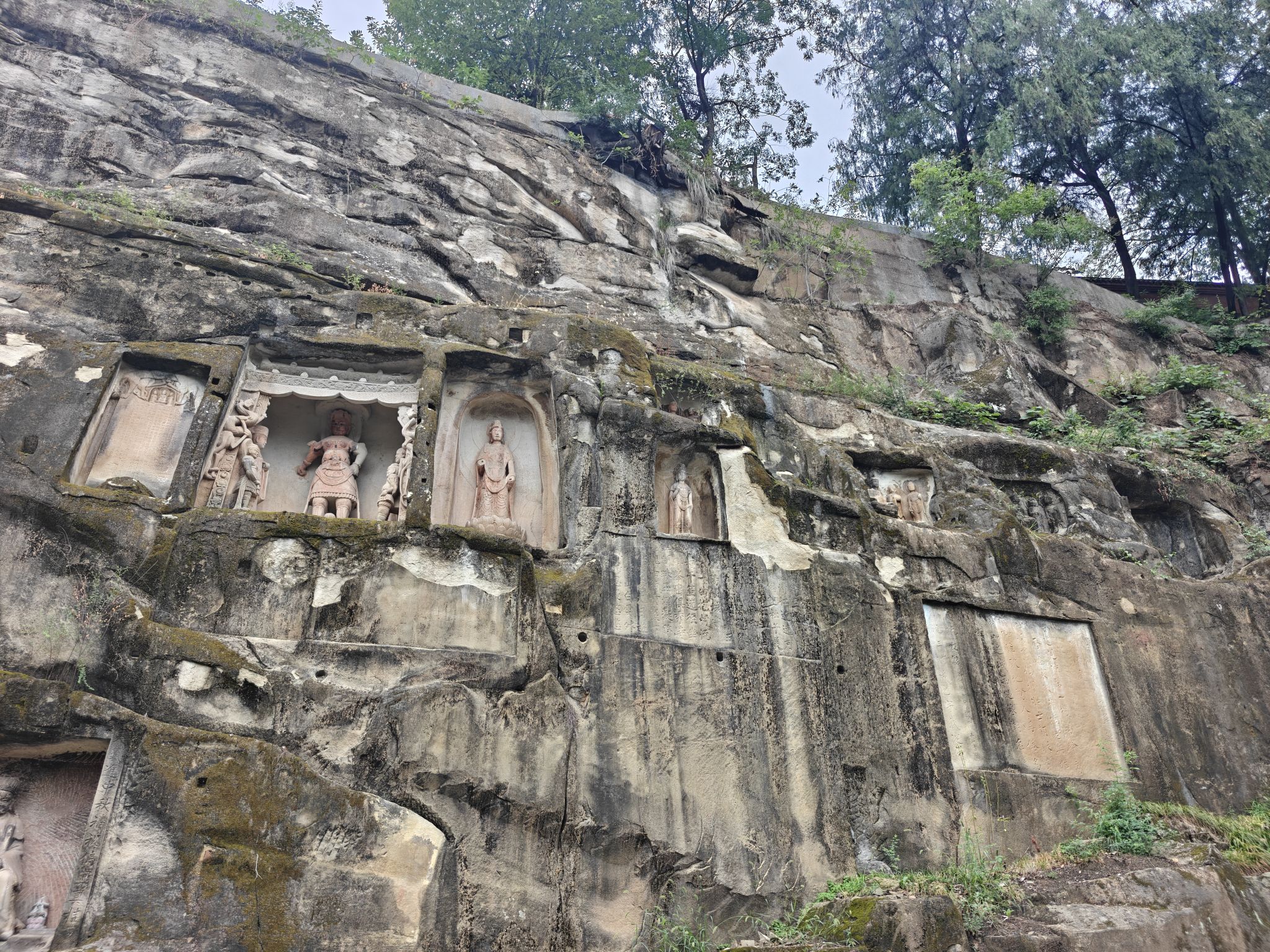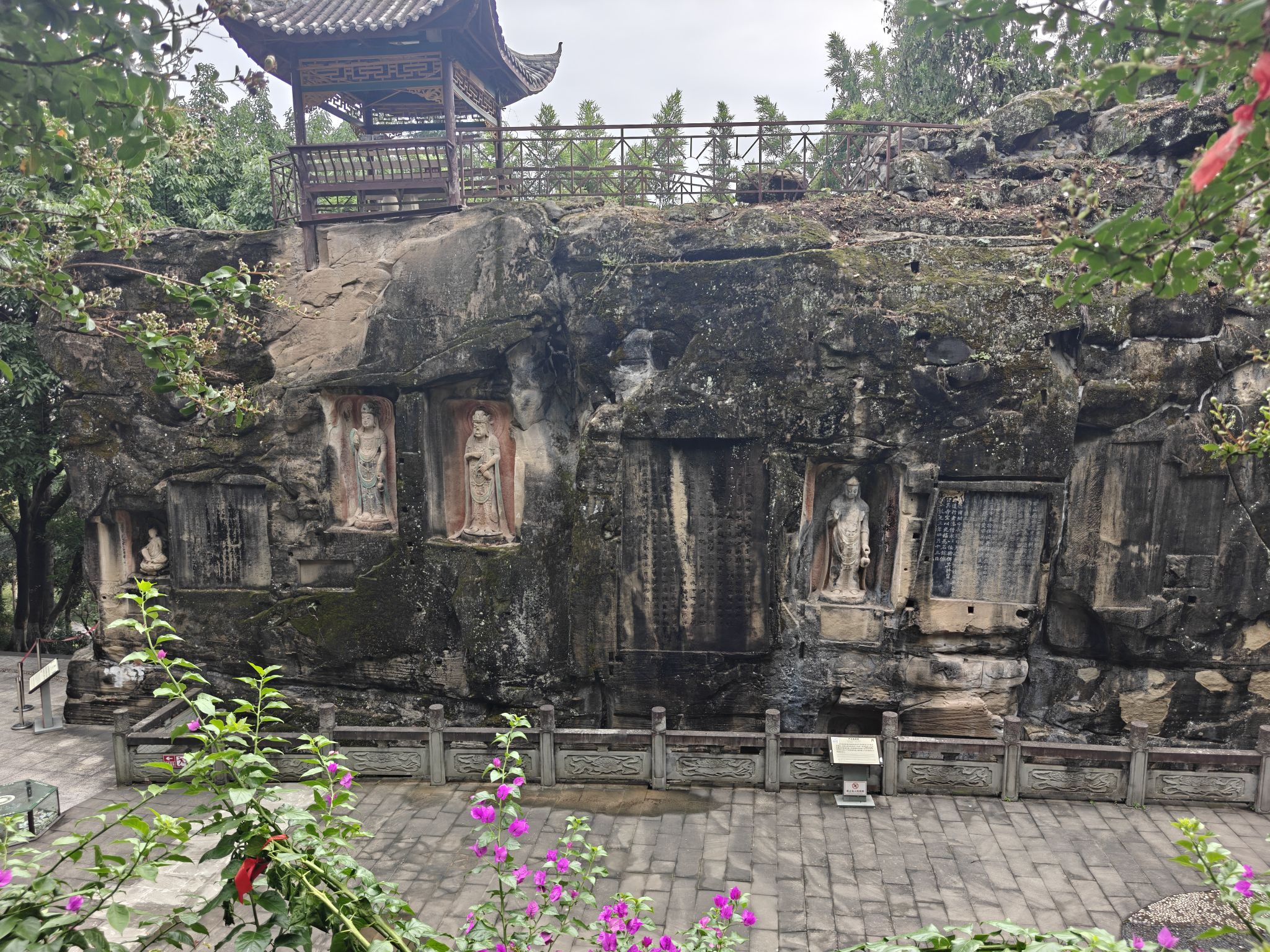 南龕摩崖石窟依山取勢,現(xiàn)存窟龕一百七十余座,佛像兩千余尊。這里的造像沒有北方石窟的粗獷雄渾,卻多了幾分蜀地的細(xì)膩溫潤。飛天衣帶如微風(fēng)拂過,菩薩低眉似在傾聽巴河千年的水聲。最為珍貴的是,崖壁間保存著嚴(yán)武、劉保等唐代官員的造像記與碑刻,墨跡斑駁間,記錄著八世紀(jì)中原與巴蜀的文化交融。