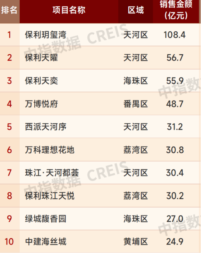 圖:2025年1-11月廣州房地產(chǎn)項目銷售金額TOP10