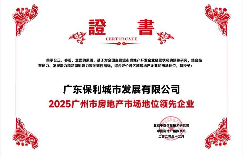 2025年12月11日,北京中指信息技術研究院主辦,中國房地產(chǎn)指數(shù)系統(tǒng)、中國物業(yè)服務指數(shù)系統(tǒng)承辦的“2025中國房地產(chǎn)大數(shù)據(jù)年會暨2026中國房地產(chǎn)市場趨勢報告會”在北京召開。會上,保利發(fā)展廣東公司(以下簡稱“廣東保利”)榮獲“2025廣州市房地產(chǎn)市場地位領先企業(yè)”,旗下高端改善項目保利玥璽灣榮獲“2025人居夢想好房子”,展現(xiàn)出企業(yè)強大的綜合實力。