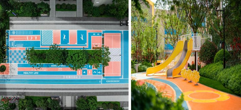 社區深刻理解全齡段的生活需求。全齡架空層泛會所,涵蓋運動、閱讀、會客等多重功能,成為家庭的延伸客廳。在戶外,專為孩童打造的海底小縱隊IP主題樂園,不僅復刻了動畫中的趣味場景,還根據不同年齡段兒童的活動能力,劃分出不同功能區,滿足孩子的探索天性;為長者貼心設計的康養活動區與茶苑,緊鄰社區綠植帶,康養區配置了適老健身器材,長者們可晨起打太極、午后圍坐泡茶弈棋,在鳥語花香中享受慢節奏的頤養時光;約190米健康慢跑道貫穿社區綠意,無論是晨跑愛好者的活力晨練,還是晚飯后家庭的悠閑漫步,都能在滿目綠意中感受運動與自然交融的愜意,真正讓活力與溫情貫穿每個年齡,讓社區成為承載全家人幸福的生活港灣。