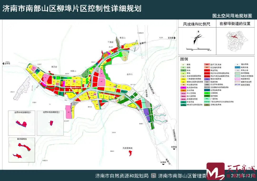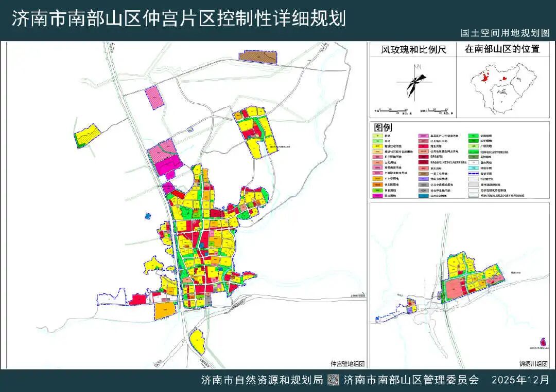 南部山區仲宮片區由仲宮駐地組團和錦繡川組團組成。仲宮駐地組團北至趵突泉酒廠新廠區,南至金宮山莊,東至鳳凰谷城鎮開發邊界東邊界,西至西許莊村西邊界;錦繡川組團北、東、西至城鎮開發邊界,南至317省道;片區規劃總面積約925.6公頃。
