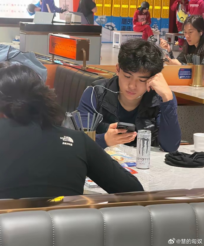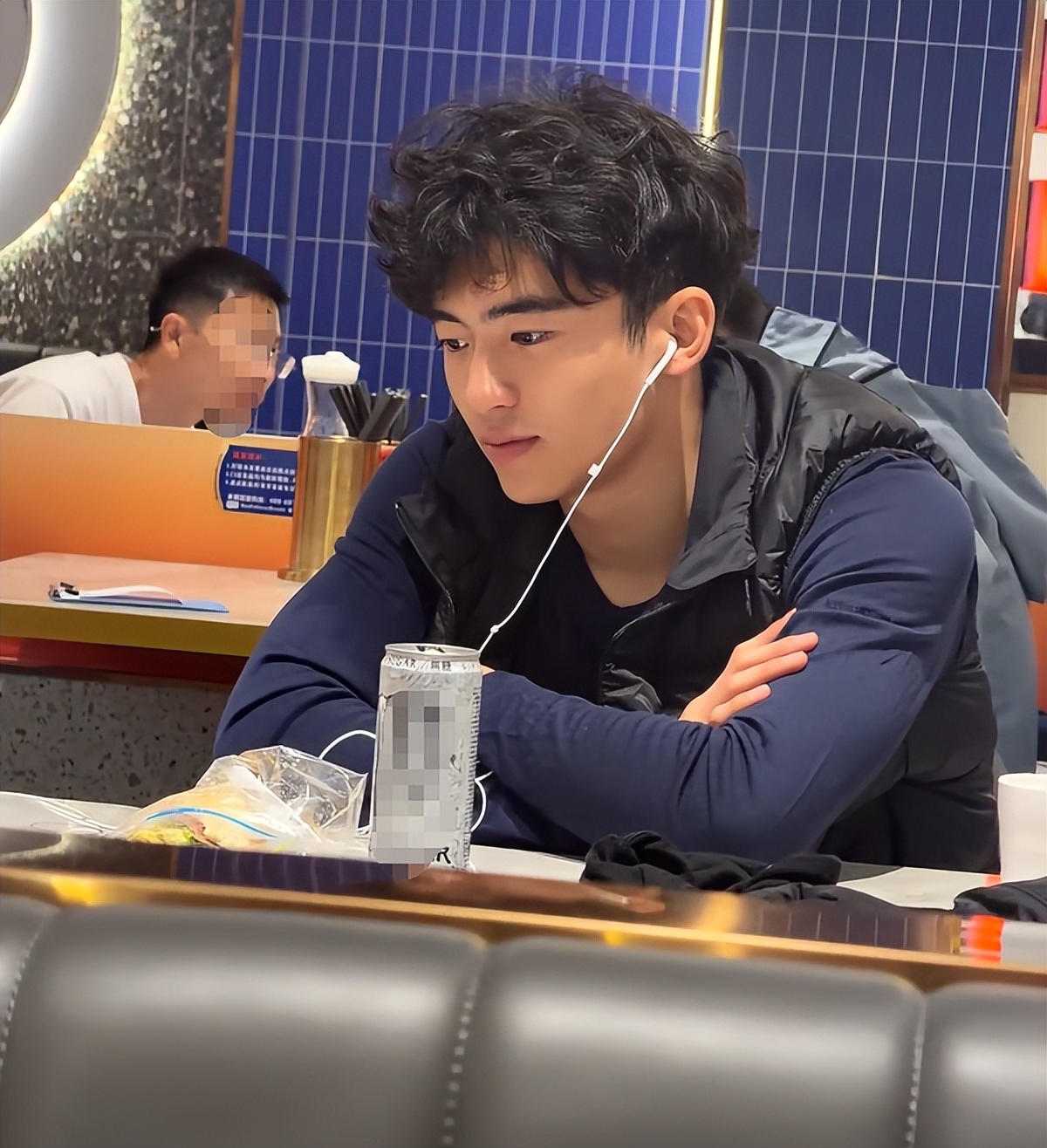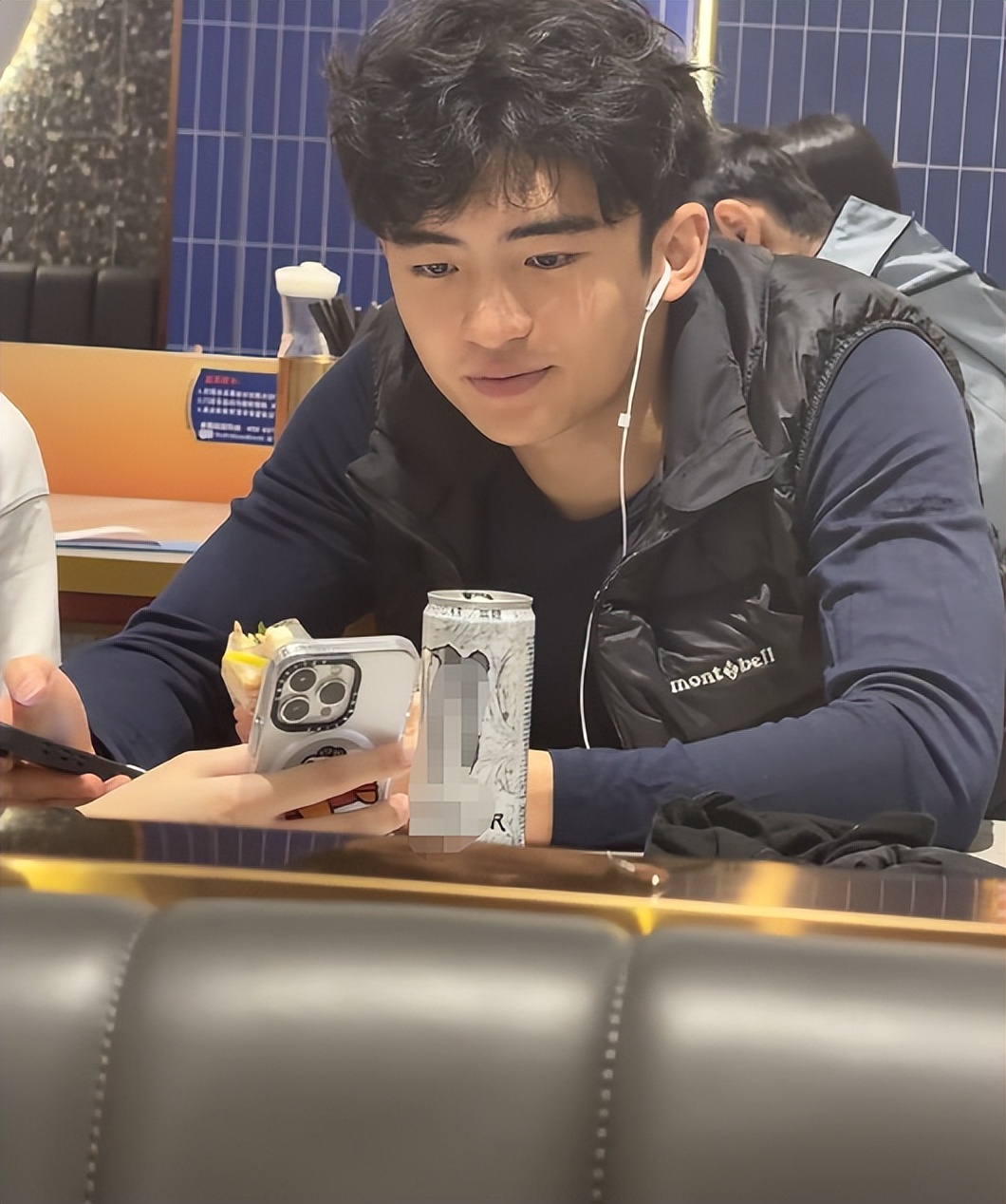 再看被網友偶遇拍到滑雪后和朋友一起在餐廳吃飯的謝振軒最新照。