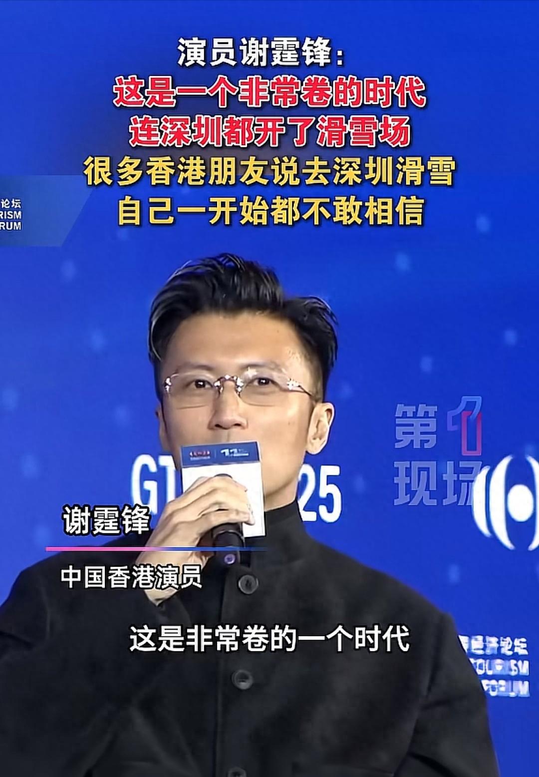 近日,謝霆鋒在世界旅游經濟論壇上,忽然感嘆說太卷了,連深圳都開了滑雪場。