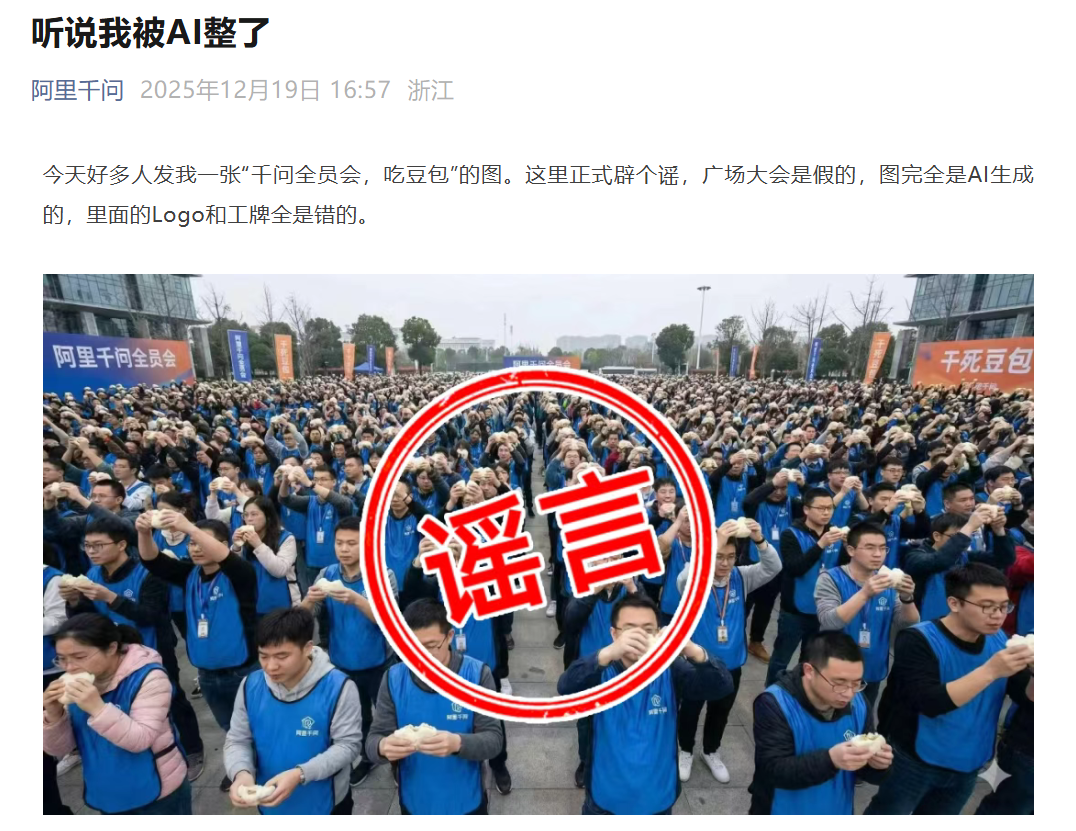 千問App辟謠:全員大會吃豆包圖是AI生成的