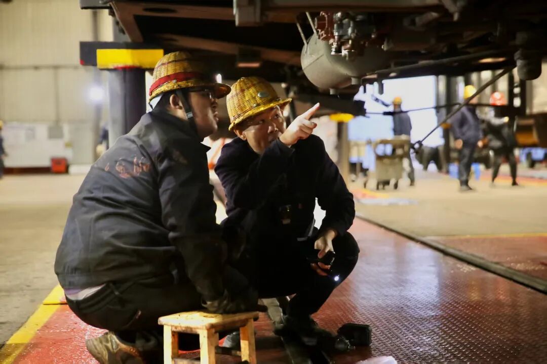 巡查中,岳水生觀察職工作業(yè)標(biāo)準(zhǔn)的執(zhí)行情況,發(fā)現(xiàn)問(wèn)題,及時(shí)糾正。在制動(dòng)閥安裝點(diǎn),他探身鉆入車底,對(duì)機(jī)車零部件維修情況進(jìn)行復(fù)核。