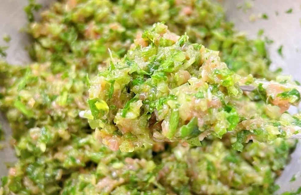 餡料是餃子的靈魂,奶奶的配方從不含糊。新鮮的薺菜焯水切碎,拌上肥瘦相間的豬肉末,再加入少許蔥姜末和自家腌制的醬油,拌勻時香氣便直往鼻腔里鉆。“薺菜要選帶根的,才夠鮮;肉要三分肥七分瘦,咬著才有勁。”奶奶一邊教我包,一邊念叨著祖輩傳下的訣竅。我學著她的樣子,把餡料放在餃皮中央,對折、捏邊,可包出的餃子不是露餡就是歪歪扭扭,奶奶從不責怪,只是笑著幫我修補,還把我包的“小怪物”單獨放在一個盤子里,說要留給我自己吃。陽光透過窗欞灑進來,照在祖孫二人的手上,也照亮了案板上漸漸堆起的餃子,像一群胖乎乎的小元寶,透著滿滿的希望。