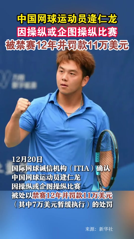 12月20日,中國網(wǎng)球在世界體育圈蒙羞。國際網(wǎng)球誠信機(jī)構(gòu)(ITIA)在今日正式宣布,對25歲的中國網(wǎng)球選手逄仁龍?zhí)幰蚤L達(dá)12年的禁賽處罰!同時,逄仁龍需要繳納11萬美元(人民幣78萬)的罰款。