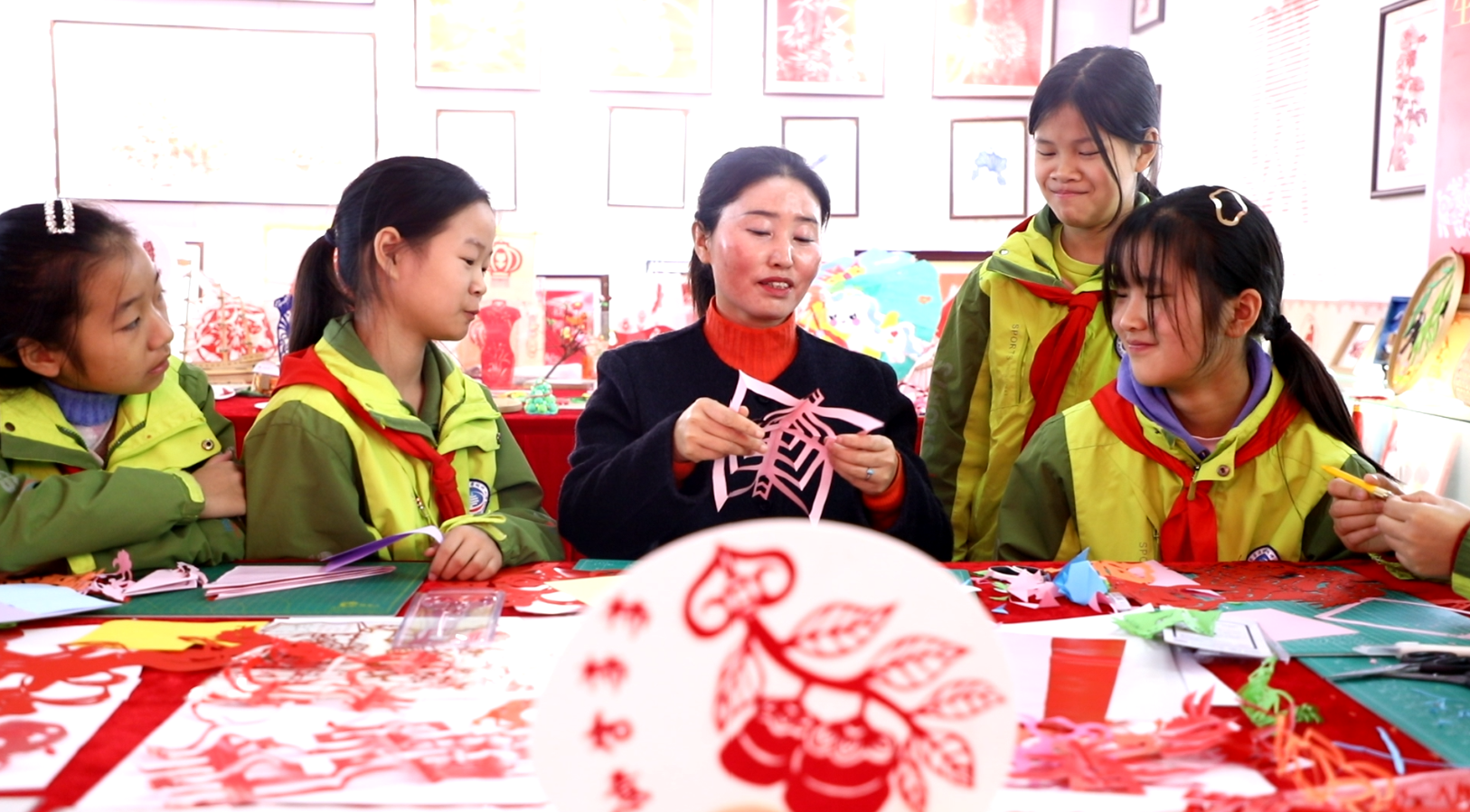 這份鮮活的非遺氛圍,背后離不開剪紙課上的蔡春芳校長。她既是一校之長,更是湖北省非物質文化遺產“堵河剪紙”的代表性傳承人。雙重身份的背后,是她對非遺傳承沉甸甸的使命與情懷。