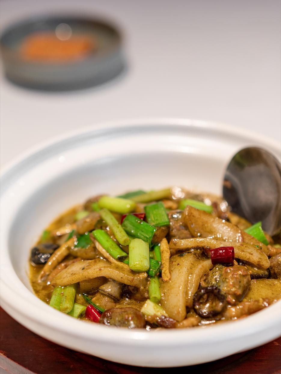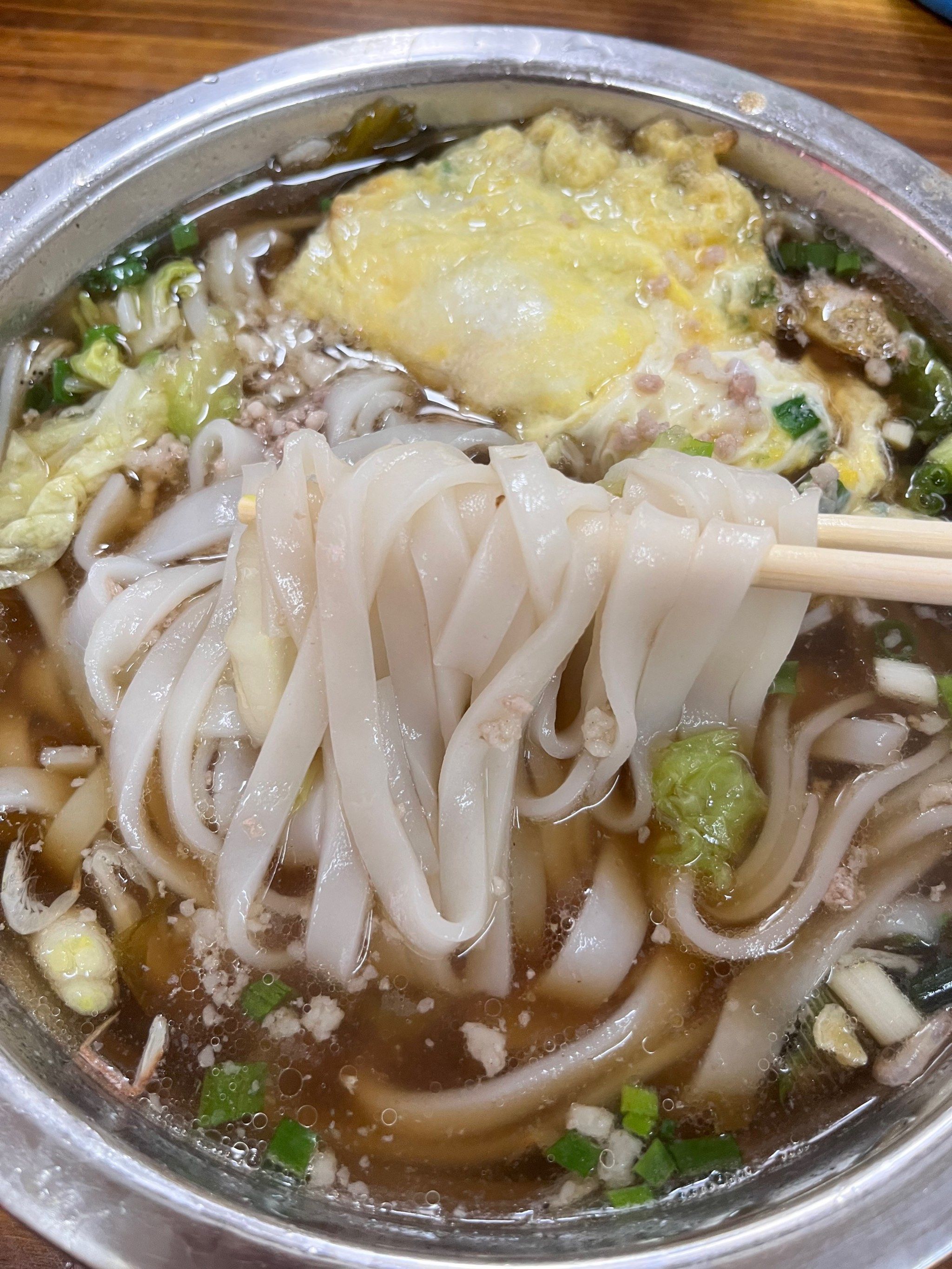 這面形似圓盤,條細如絲,咬一口韌滑爽口,米香混著湯汁直鉆喉嚨。