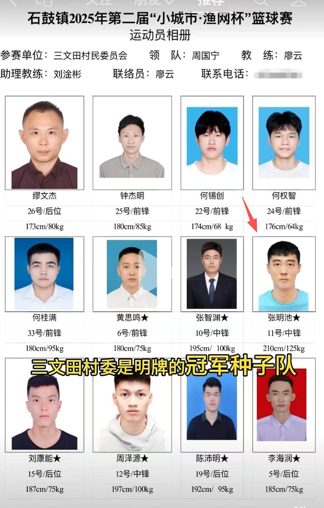 胖成了個球,不過張明池因為得天獨厚的身高優勢在野球場上還是有不少的市場的,此前,張明池代表深圳海陸參加了BSK聯賽,他幫助球隊進入了8強,在這邊聯賽剛剛結束,張明池這邊再一次官宣了自己的新球隊,是的,這一次張明池加入的是一支名叫“三文田村隊”的籃球隊,據悉,張明池將代表這一支存對參加石鼓鎮2025年第二屆“小城市.漁網杯”籃球賽。