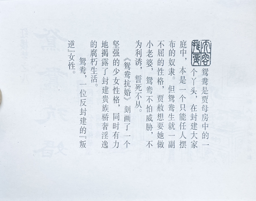 《鴛鴦抗婚》刻畫了一個堅強的少女性格,同時有力地揭露了封建貴族驕奢淫逸的腐朽生活。