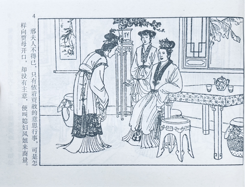 4、邢夫人不得已,只有依著賈赦的意思行事,可是怎樣向賈母開口,卻沒有主意,便叫媳婦鳳姐來商量。