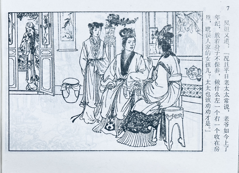 7、鳳姐又道:「況且平日老太太常說,老爺如今上了年紀,放著身子不保養,做什么左一個右一個收在房里,耽誤人家的女孩兒?太太也該勸勸才是。」