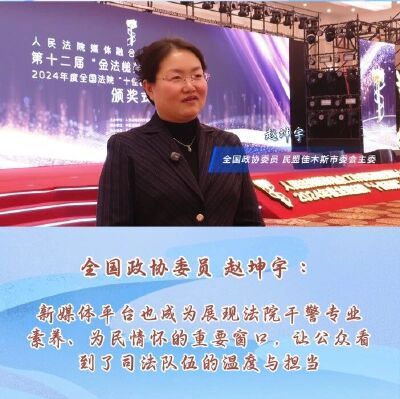 全國政協委員趙坤宇:新媒體平臺也成為展現法院干警專業素養、為民情懷的重要窗口,讓公眾看到了司法隊伍的溫度與擔當