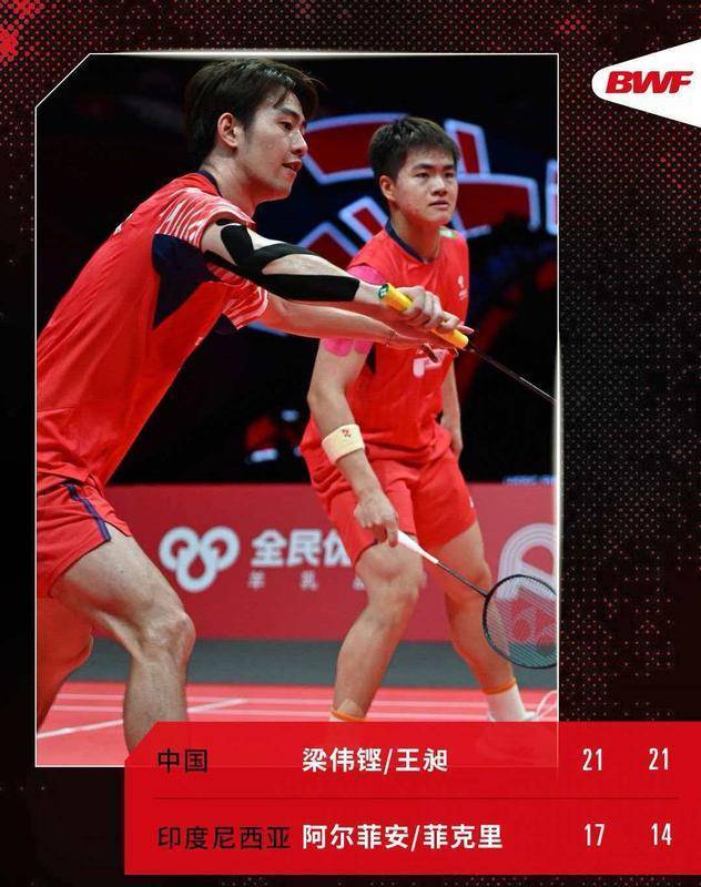 男雙,梁偉鏗/王昶21-17、21-14終結了對陣阿爾菲安/菲克里的三連敗,晉級四強。