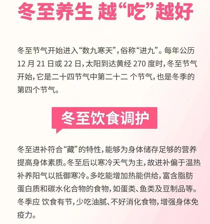當雪花飄落,萬物靜寂,我們不妨放緩腳步,傾聽身體的聲音,順應自然的節律。在這最長的夜晚,以溫暖的食物慰藉脾胃,以充足的睡眠涵養精神,以待朝陽再次早早升起,迎接陽氣漸長的又一年循環。