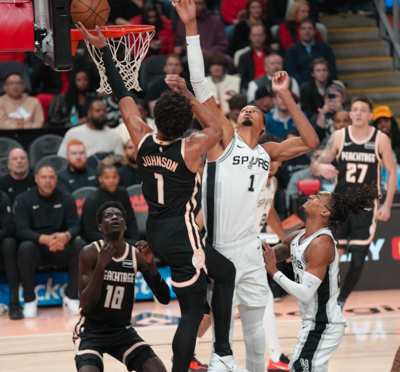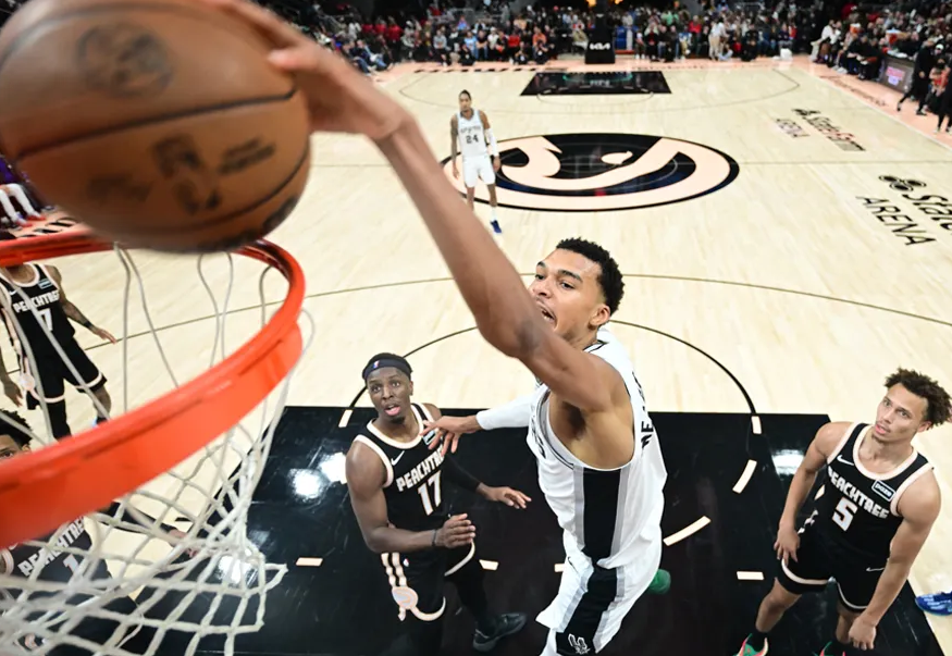 第一節(jié)比賽馬刺打出一波5-0,隨后老鷹回擊一波6-0,瓦塞爾命中兩記三分球后約翰遜罰球2中2,科內特扣籃得分后沃克命中三分,馬刺一波5-0后丹尼爾斯拋投命中,文班亞馬罰球2中1后卡斯爾補籃得分,接下來馬刺直接打出一波13-4,第一節(jié)比賽結束馬刺領先13分。第二節(jié)比賽沃克補籃得分,凱爾登打板得分后肯納德上籃得分,本來之后沃克幫助老鷹緊咬比分,可之后馬刺又打出一波7-0,丹尼爾斯突破得分后老鷹落后19分。接下來的比賽肯納德、約翰遜雖然開始命中三分,但是巴恩斯也命中三分回應,文班亞馬、科內特更是頻頻在內線得分,半場比賽結束馬刺領先24分。