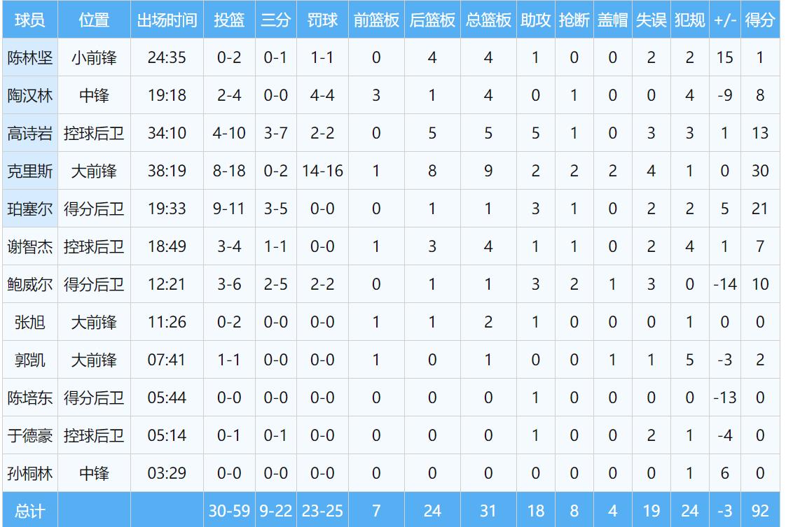 但其中有一名球員表現低迷,那就是陳林堅。本場比賽他僅貢獻1分,投射次數也僅有3次,作為球隊的頂尖射手,卻未能獲得相應的戰術傾斜,這無疑是邱彪的一大執教疏漏。