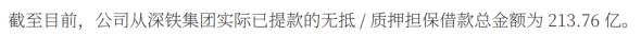 根據股東借款框架協議,深圳地鐵向萬科提供的借款,萬科須為每筆借款提供抵質押擔保。截至2025年11月13日,萬科實際從深圳地鐵提取的無擔保借款金額為213.76億元。