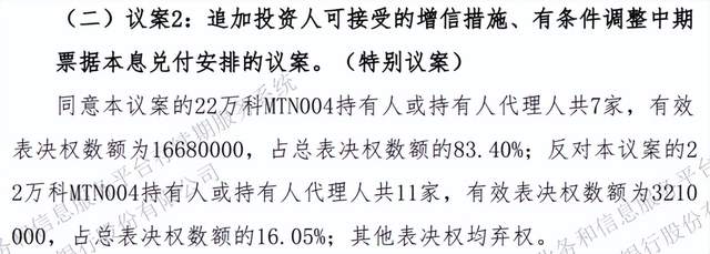 事實上,此前該中票首次方案全部未獲通過,就連最接近通過的方案也僅獲83.4%的贊成票,距離90%的通過門檻仍差6.6個百分點。