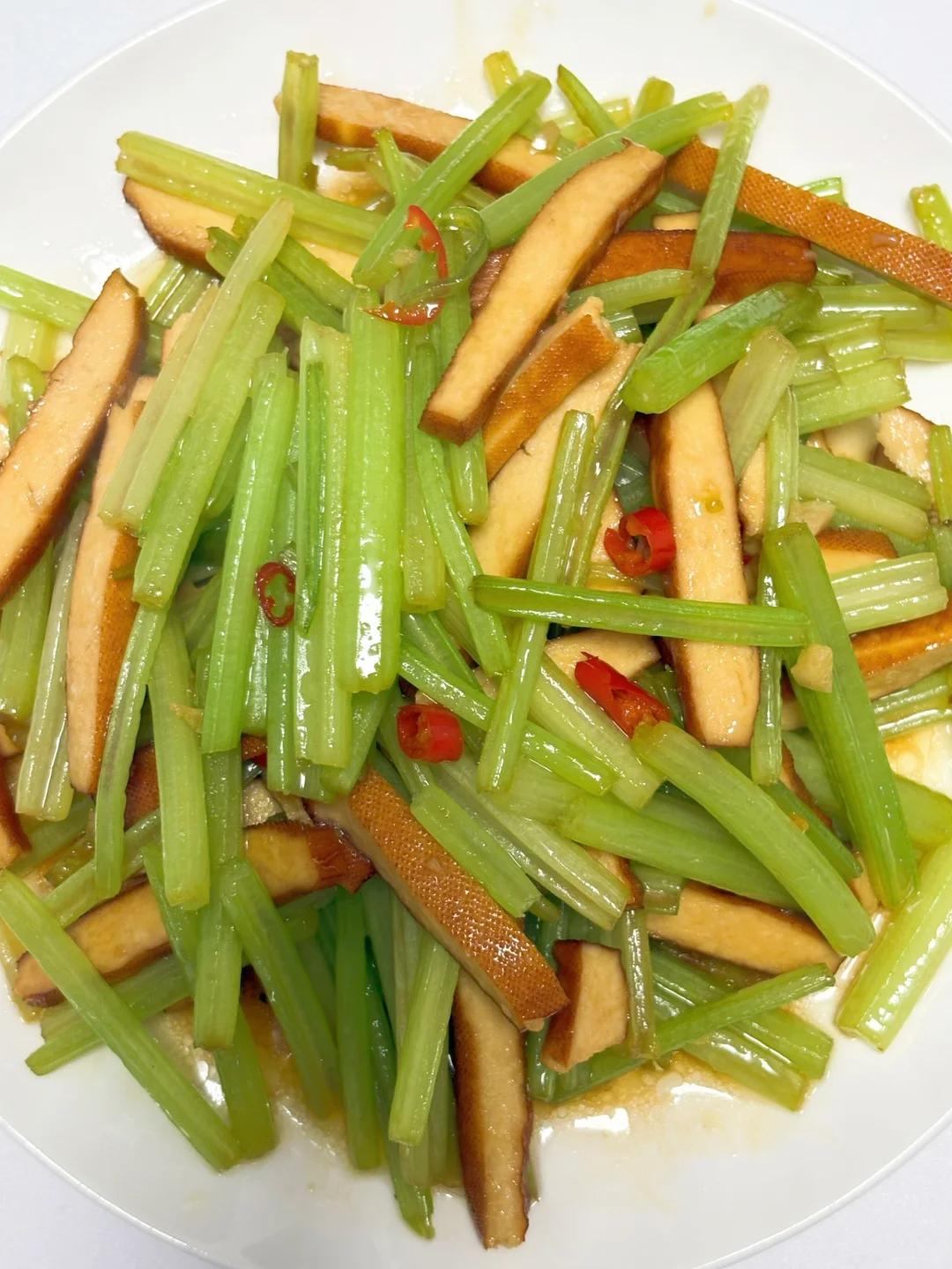 這道菜芹菜脆嫩爽口,香干軟嫩入味,帶著芹菜的清香,特別下飯,而且膳食纖維豐富,能幫助促進腸道蠕動,吃再多油膩的食物都不怕。