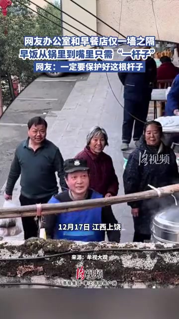 網(wǎng)友辦公室和早餐店僅一墻之隔,早飯從鍋里到嘴里只需“一桿子”
