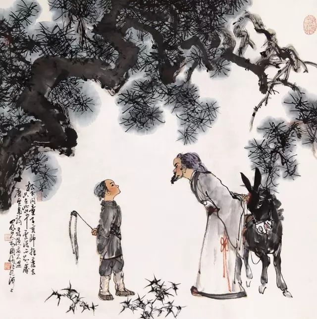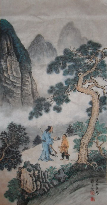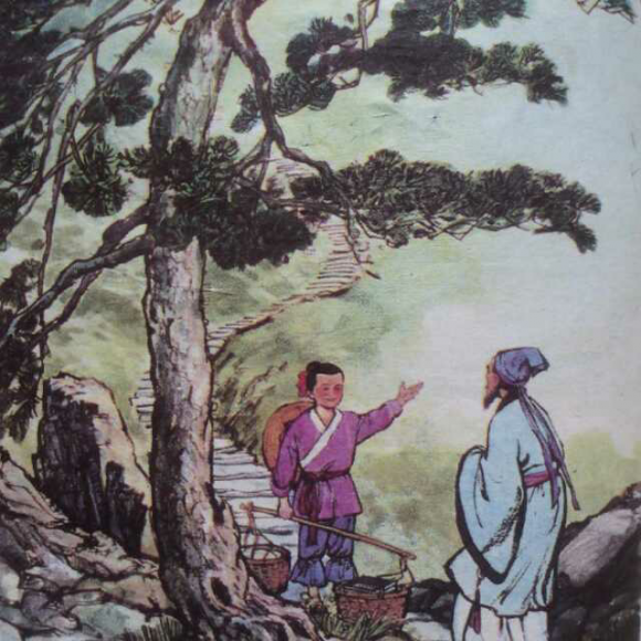 ①“松下問童子”:我在松樹下詢問隱者的小徒弟。