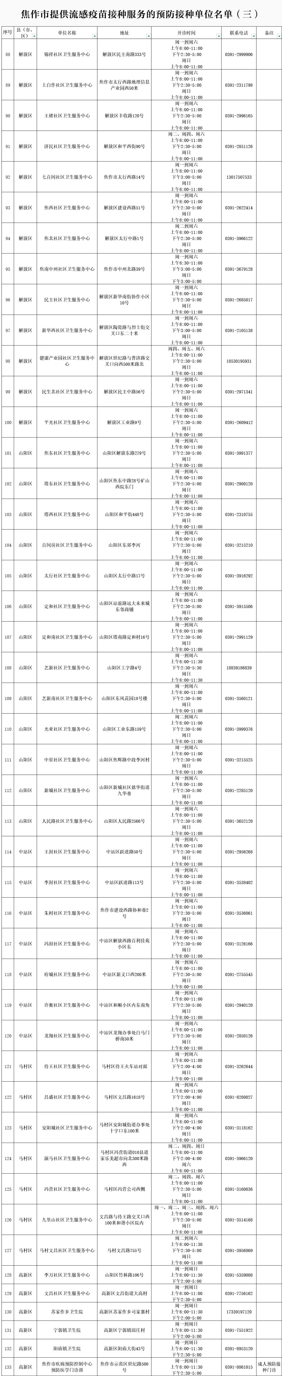 (其中,成人預防接種門診僅限18歲以上人群接種流感疫苗)