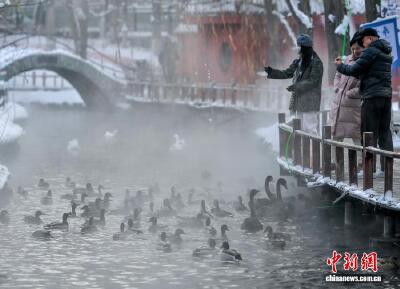 禹王臺公園里的老爺爺用雙手為動物編織的“雪中童話”