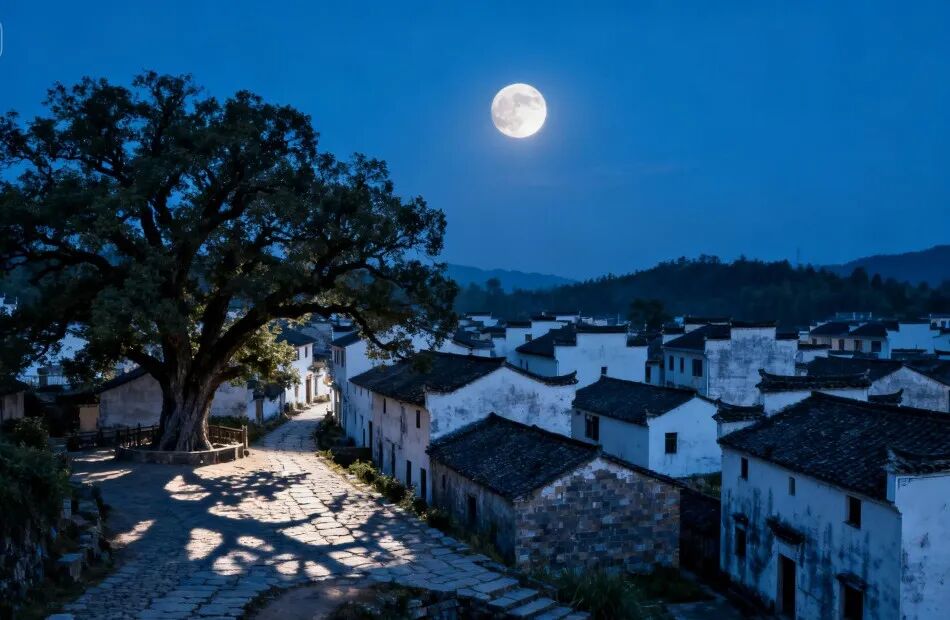 待到夜深,人們紛紛散場,大人喊著孩子的小名,然后拉起他們的小手,準備回家。我又與姥姥走在這巷子里,月光照在每一塊石板上,讓回家的路都變得神圣起來。