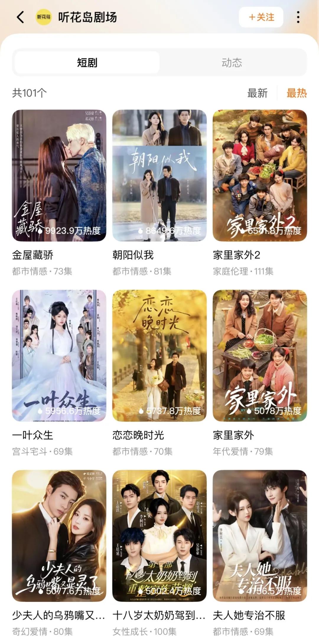 ▲聽花島在紅果短劇的劇場。圖片來源/紅果短劇平臺