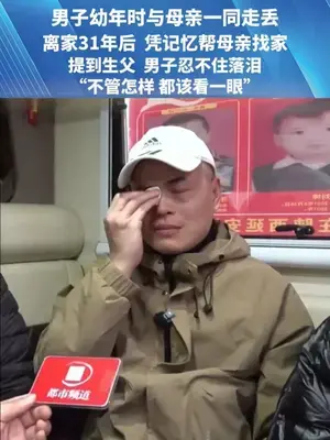 男子幼年時與母親一同走丟,離家31年后 憑記憶幫母親找家,提到生父 男子忍不住落淚,“不管怎樣 都該看一眼”