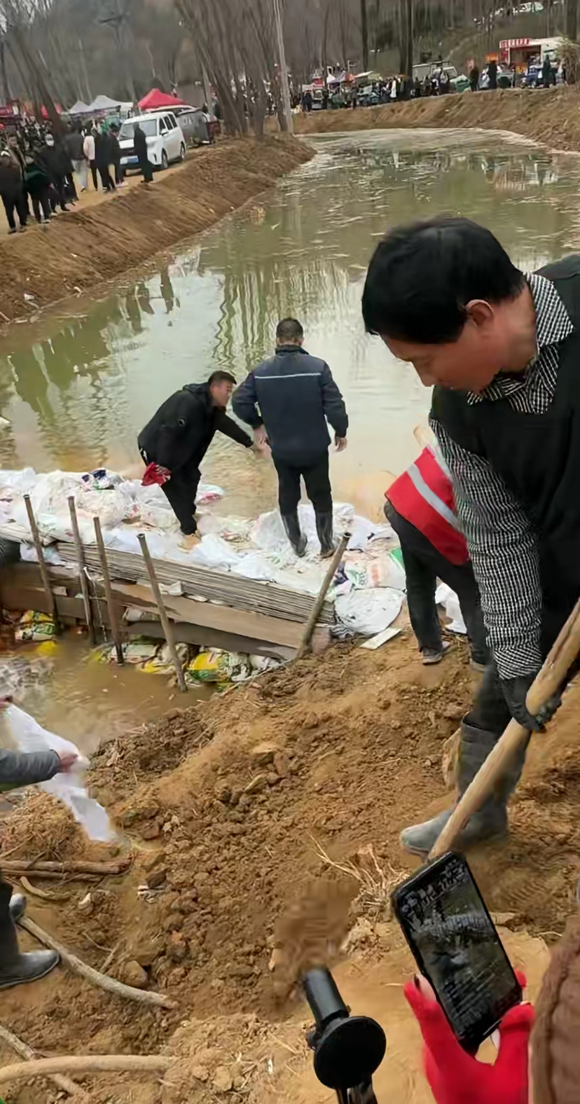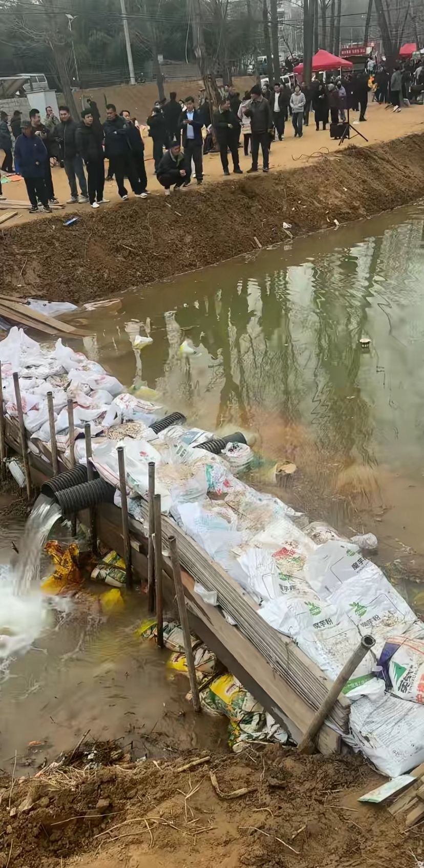 鄭州二七區馬寨梨園河村最近三四天在修壩!距離溫泉源約 頭200 米處,頭兩天修好夜里就沖垮了,之后總結教訓后再修,這個土法橡膠壩與今日初見牢固了,關鍵是采取了疏堵結合。鋪上木板,一個小橋就通了。