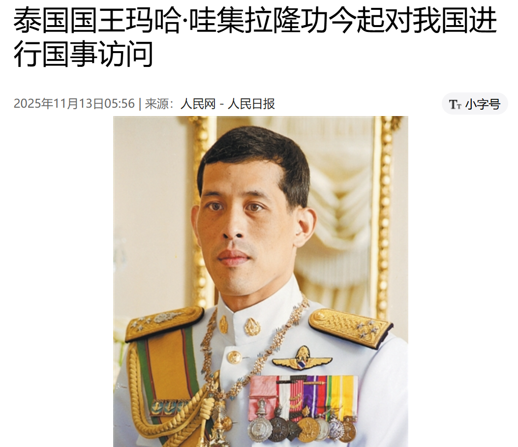 比如,2025年11月中旬,泰國國王瑪哈·哇集拉隆功,突然宣布對中國進行國事訪問。