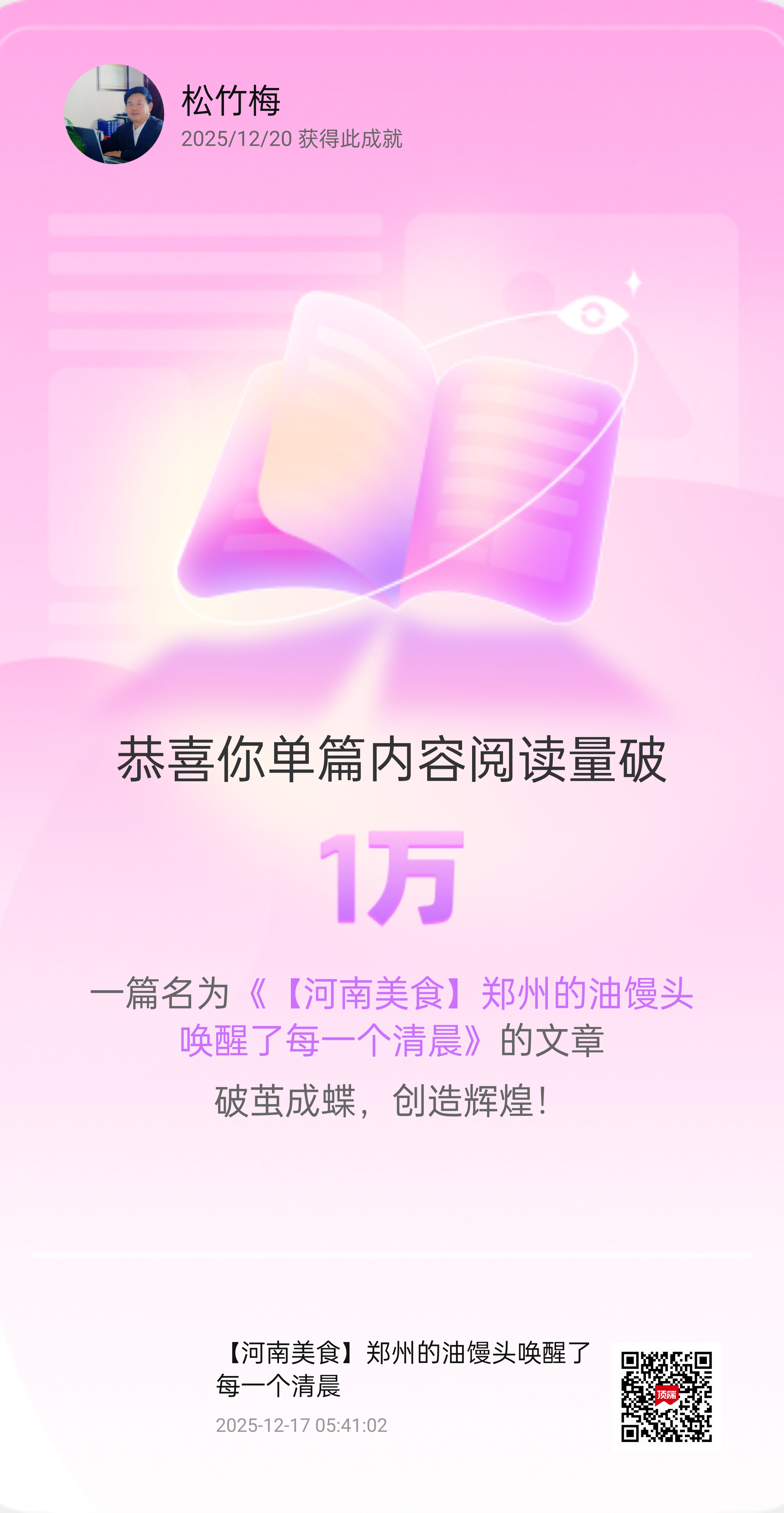 分享頂端榮譽:今天,我的四篇拙作單篇閱讀量都突破一萬。謝謝編輯老師!謝謝各位師友!