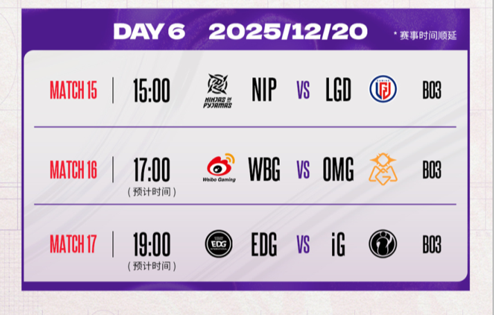 12月20日,三場比賽由NIP對陣LGD,WBG對陣OMG,以及EDG對陣IG帶來。誰又會笑到最后呢,讓我們拭目以待。