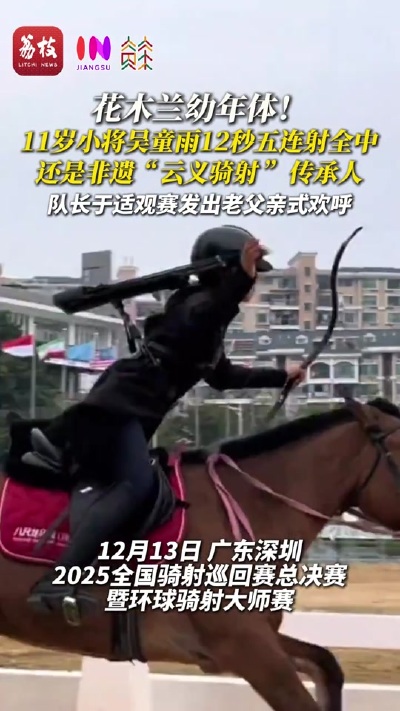 12月13日,11歲少女吳童雨在2025全國騎射巡回賽總決賽暨環球騎射大師賽“馬上戲(團體)”項目中,以12秒內五箭連中靶心的驚艷表現,助力中國隊強勢晉級環球騎射團體決賽。這場被網友稱為“小說劇情照進現實”的巔峰對決,不僅讓世界見證了中國女性運動員的硬核實力,更讓騎射這項古老運動煥發出新的時代光芒。