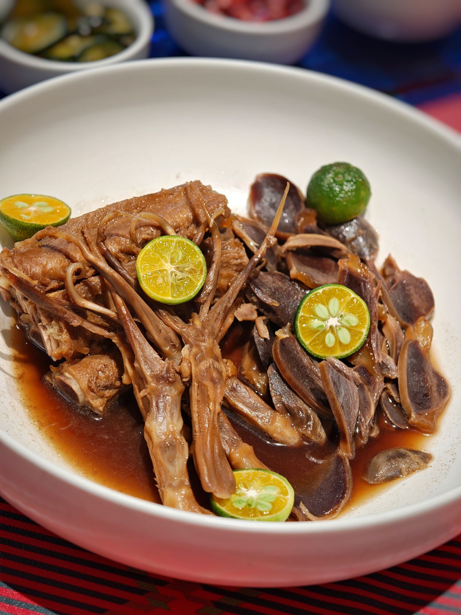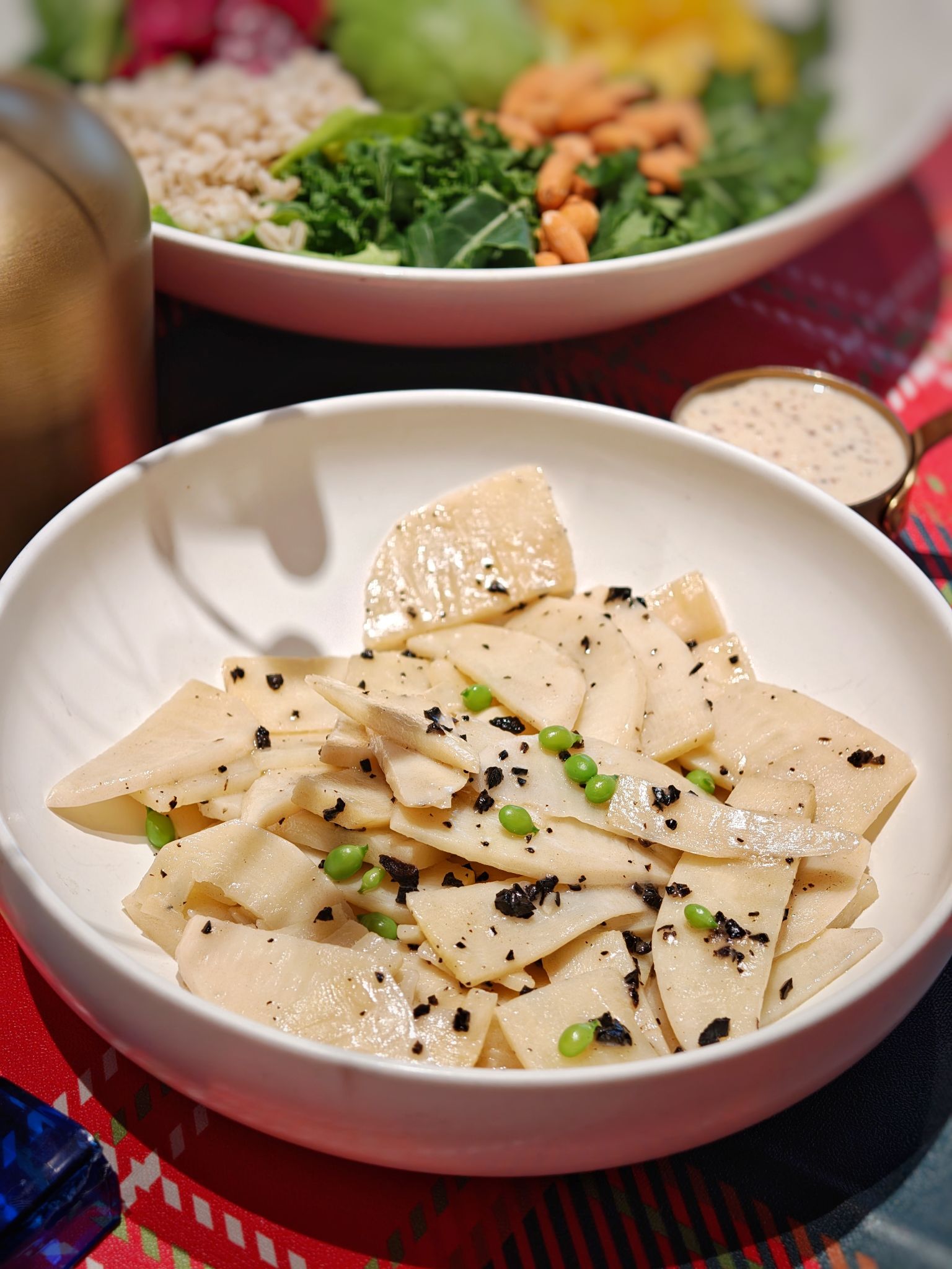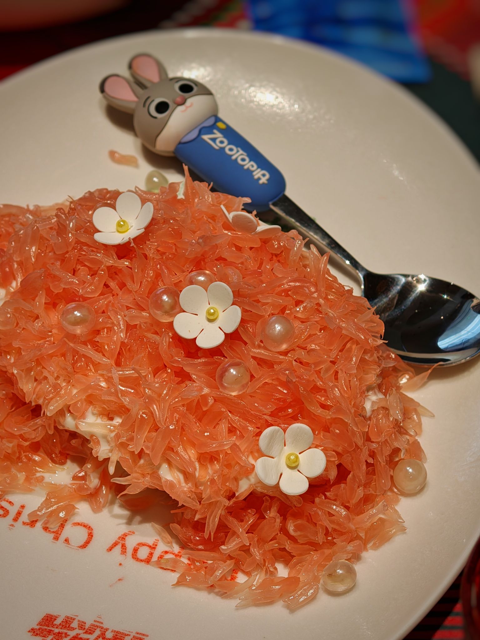 和小伙伴約逛東萬,午餐直奔小大董!烤鴨永遠(yuǎn)是招牌必點——鴨皮酥香焦脆,蘸白糖入口即化,卷進(jìn)餅里更是美味加倍。這次新試的沙茶蘿卜牛腩也超贊,牛肉燉得軟爛入味,蘿卜糯中帶甜,隱隱透出木姜子的獨特香氣,妥妥的下飯神器!小龍蝦麻婆豆腐麻辣鮮香,松露醬炒筍尖則清新脆嫩,松露的濃郁襯托出筍的爽口。特別要夸夸今年的網(wǎng)紅甜品:固體楊枝甘露!一整只飽滿芒果吃起來無比過癮,口感綿密濃郁,吃完真的想再打包一份帶走。在店里還喝到了圣誕特調(diào)氣泡水,搭配冰糖葫蘆,氛圍瞬間拉滿~
