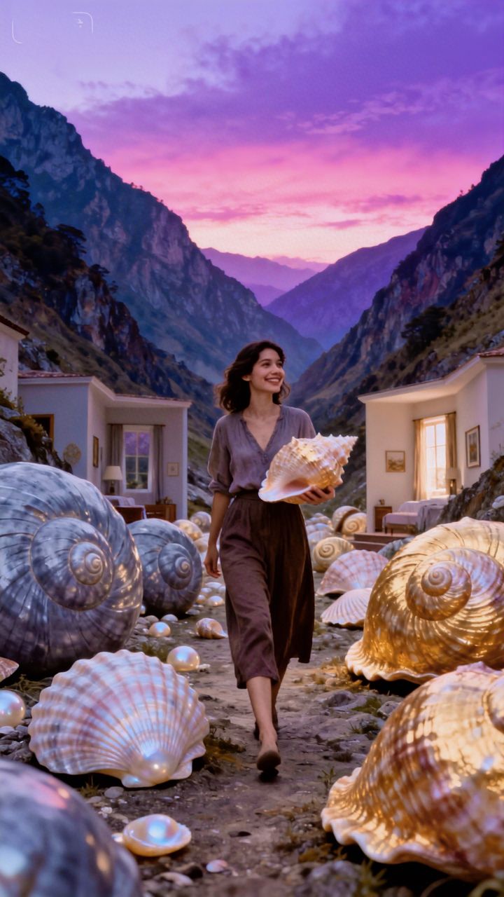 我夢見自己走進一座山谷,谷中長滿螺旋狀的巨大貝殼,每一個都有房間那么大。這些貝殼的顏色隨時間流轉:清晨是珍珠灰,正午是琥珀金,黃昏是玫瑰紫……