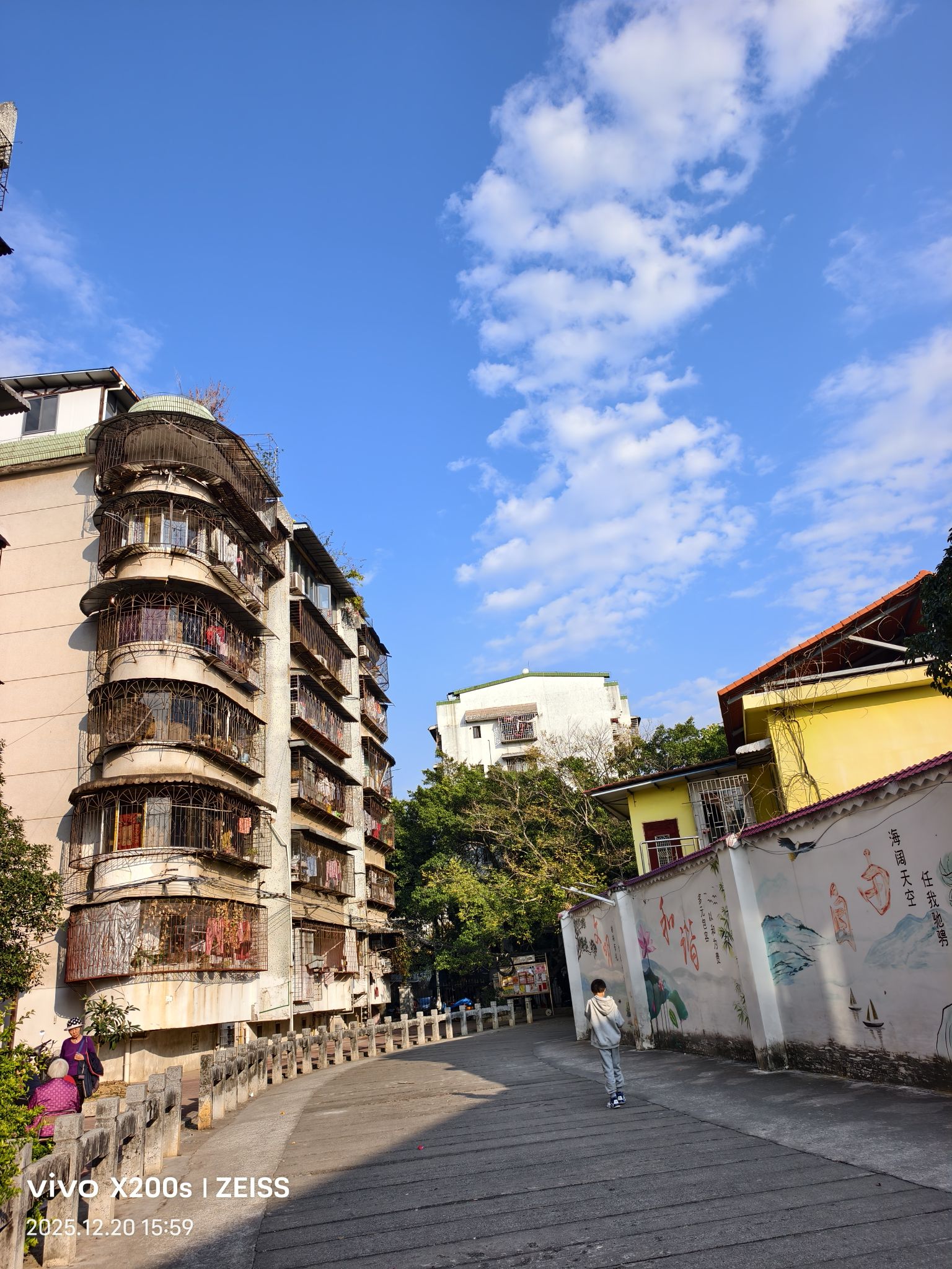 曬太陽的老人在欄桿邊聊著天,穿淺灰色衛衣的小孩踢著石子晃過墻根,風裹著桂花香(沒錯,桂林的秋末還留著點桂香尾調)擦過我的袖子。