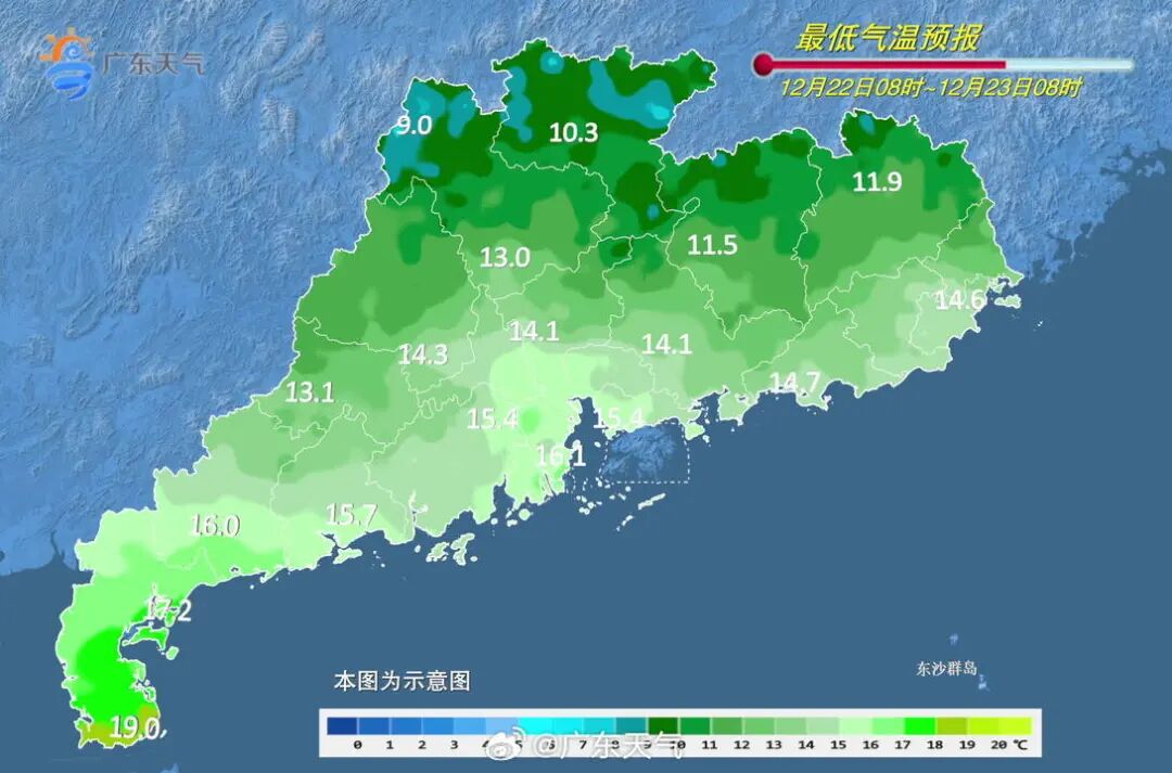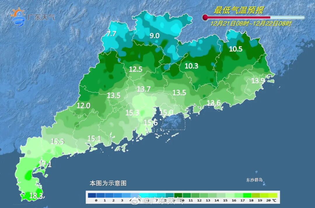 最低氣溫:韶關(guān)、清遠北部、河源北部市縣7~12℃,珠三角中南部和南部沿海市縣17~20℃,其余市縣12~16℃。