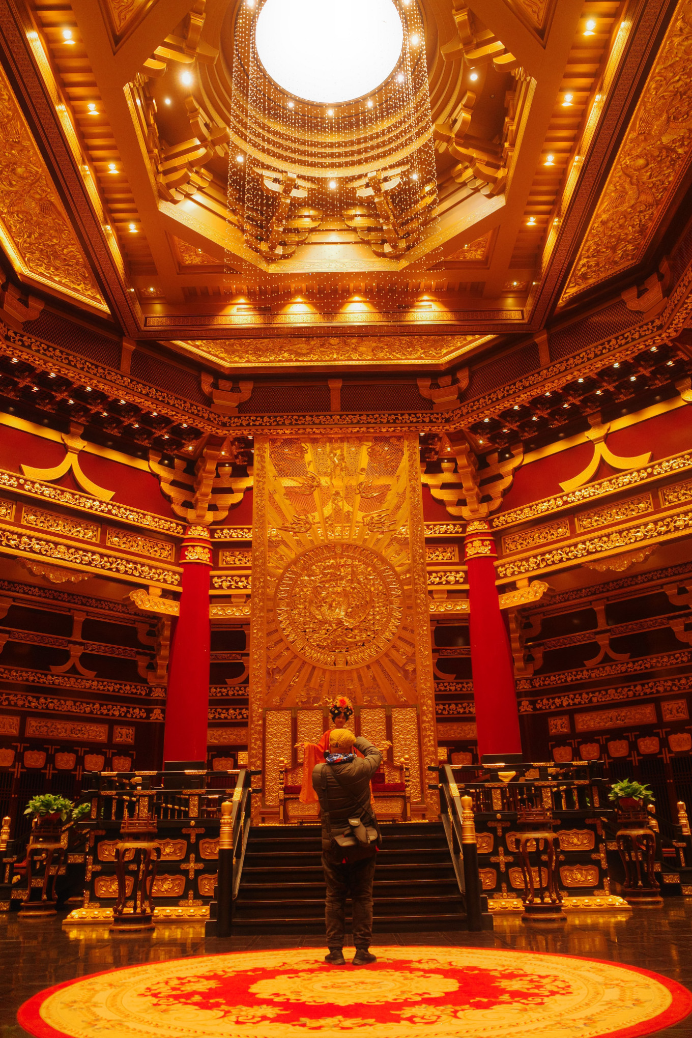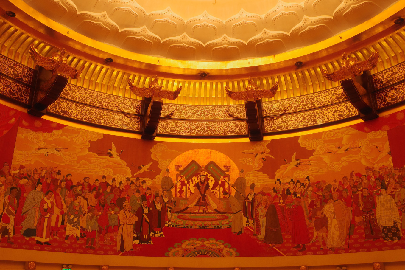 天堂,號曰通天浮屠。緊鄰明堂 西北 部,為武則天宮內禮佛道場,是武則天感應四時、與天溝通的御用禮佛圣地。天堂內部展陳設計為一層為天堂的遺址層;二層接引堂展示《萬國來朝》壁畫;三層展示藏傳佛教最神圣的壇城,供奉阿彌陀佛;四層為禪修中心;五層為法寶閣,展示出土于 洛陽 、與 洛陽 有關的珍貴文物。六層展示唐代宮廷茶藝;七層為佛緣廳;八層為游客佛像供養中心;九層為天之圣堂,供奉 彌勒 佛。