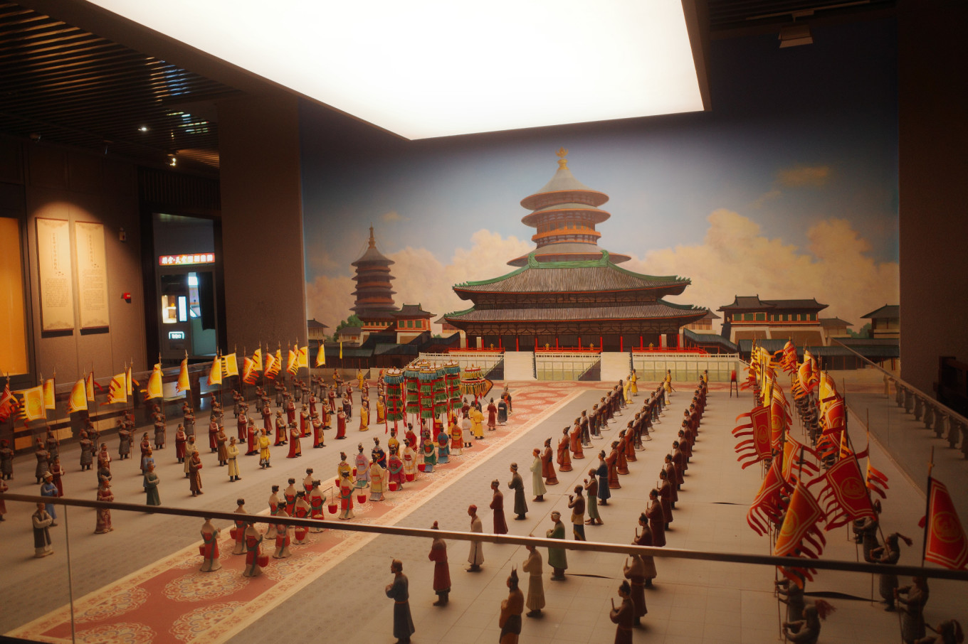 明堂又稱 萬象 神宮或通天宮,為祭祀、朝會、慶賞、選士等大禮典舉行的禮儀場所。明堂內部分為上下兩層。一層圍繞中心柱遺跡,設置明堂沿革廳、明堂大享廳、武皇政績廳、武皇文化廳、隋唐城建廳、明堂影視廳、明堂規劃廳,7個大廳。明堂二層為面積達2000平方米的武皇 萬象 神宮。